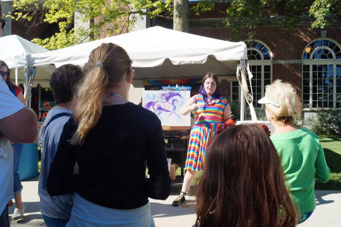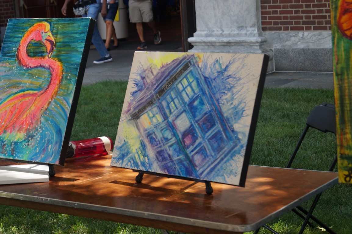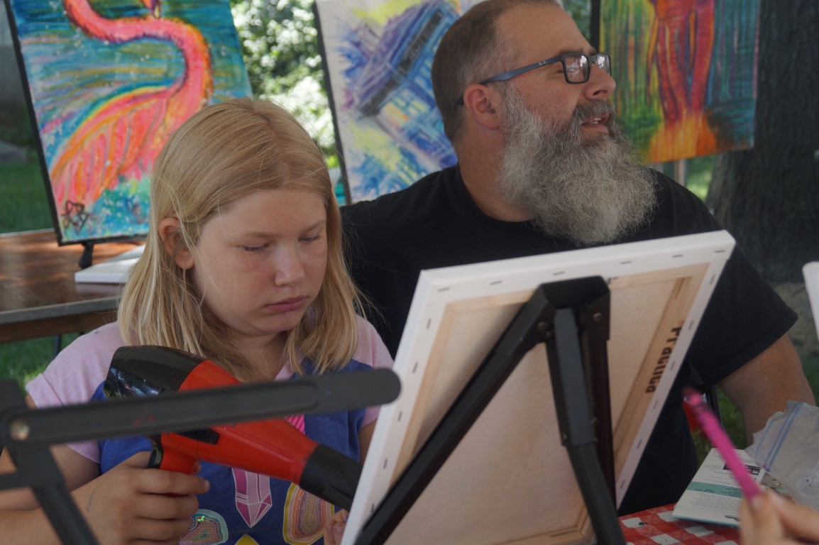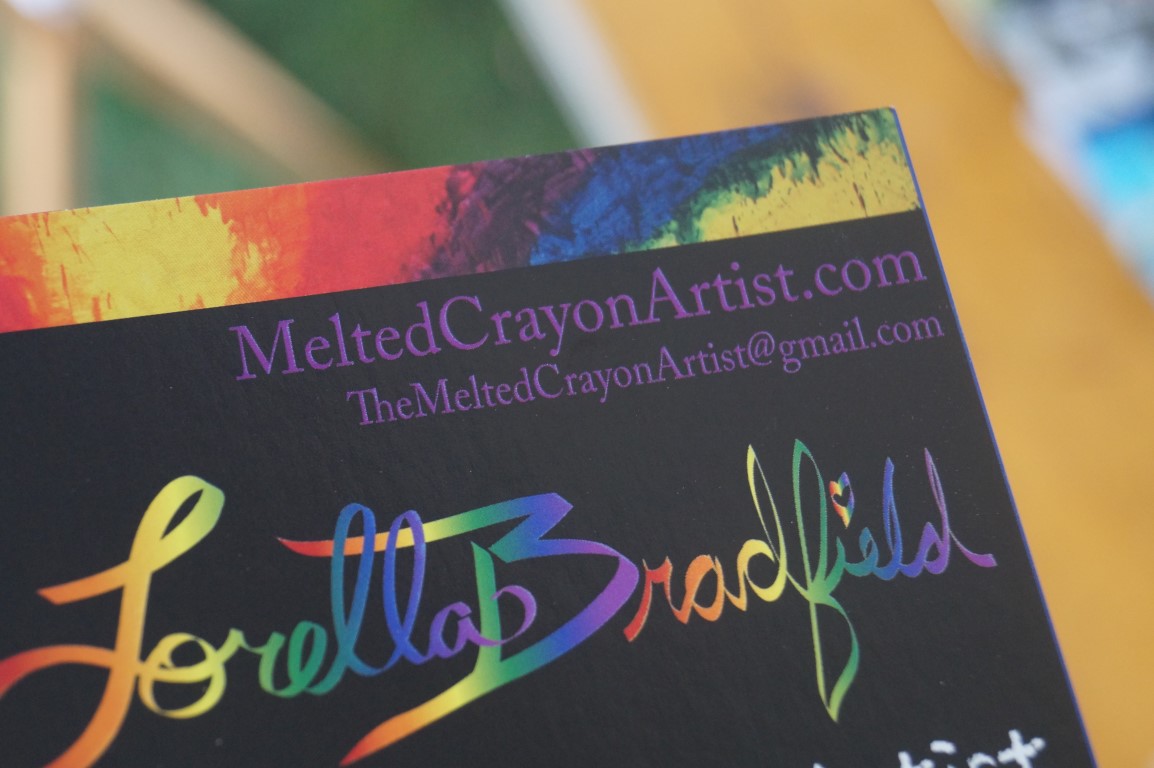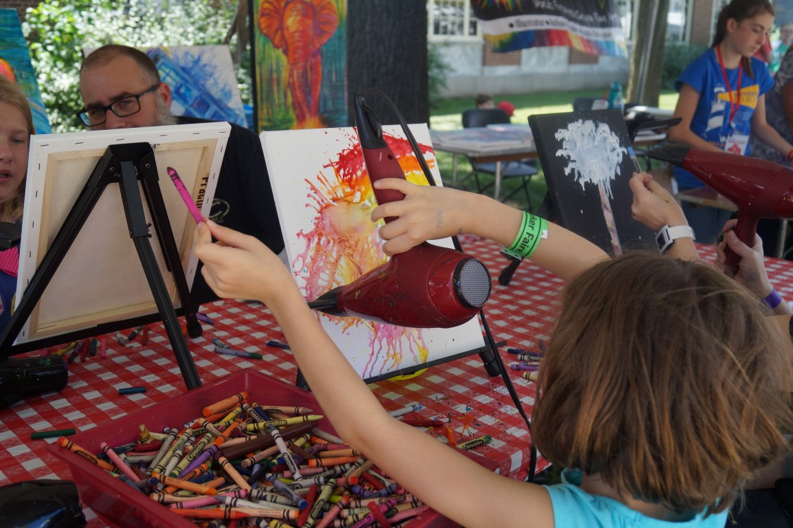 Lorella Bradfield makes art by using crayons and a bit of creative hot air. I found her this morning, showing a crowd how she does her art, with this picture only just begun. Now it is finished and other participants are making their own in her booth!