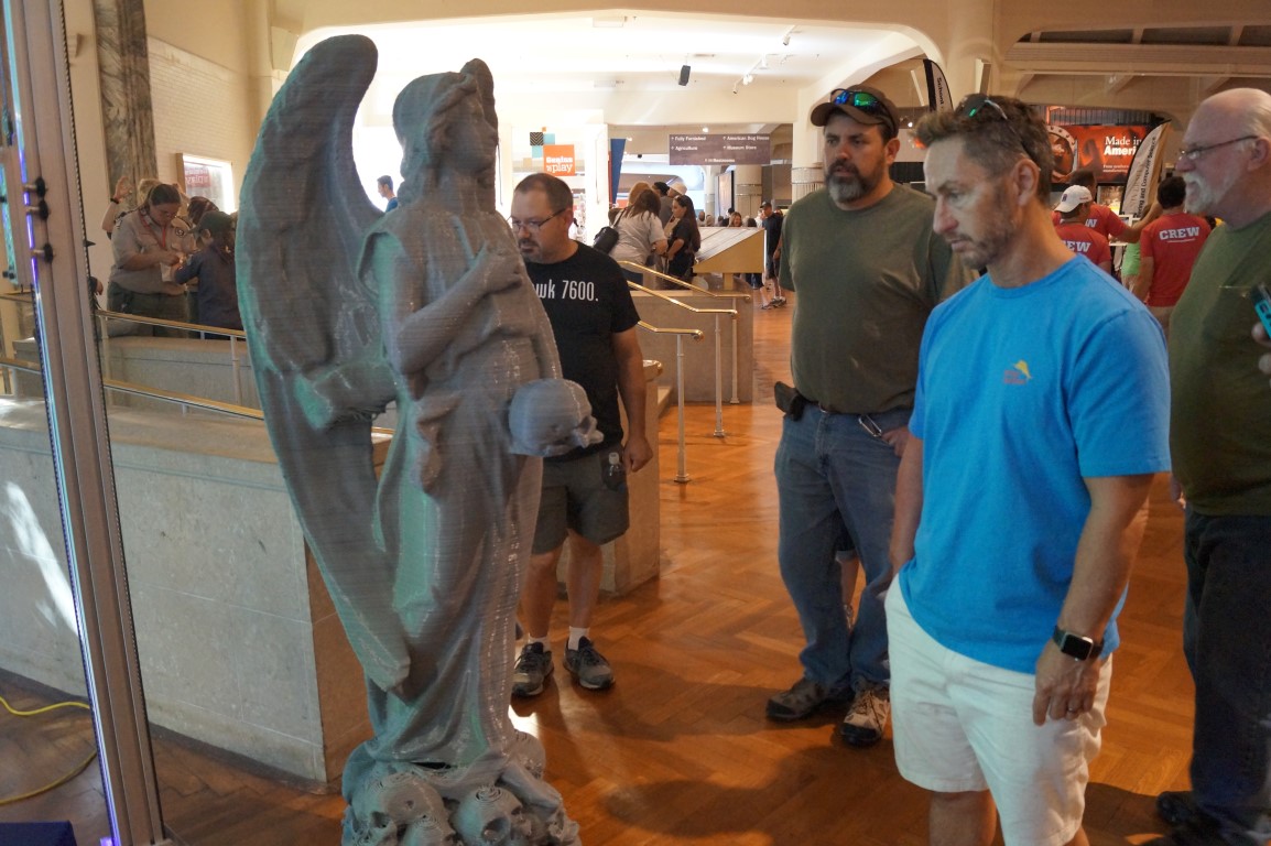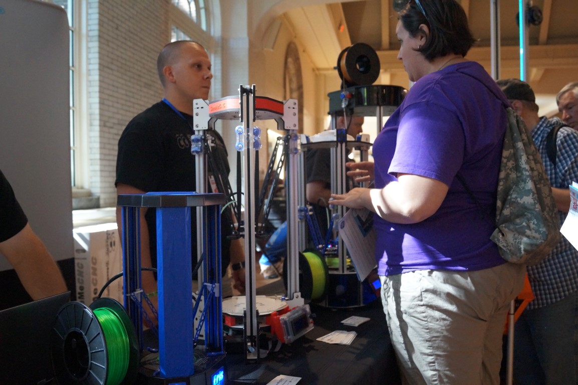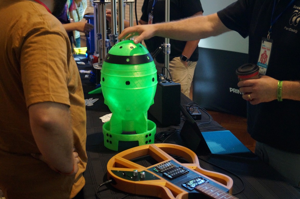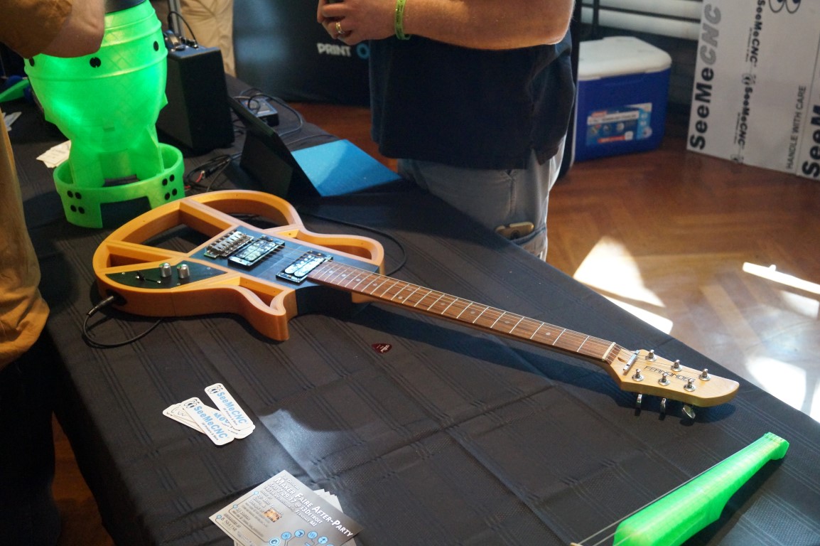 Within seconds of the gates opening, there was a crowd formed around the See Me CNC booth. They were showing of “part daddy”, the 17 foot tall delta printer. This time around they also had some great prints of musical instruments like a violin and a guitar.