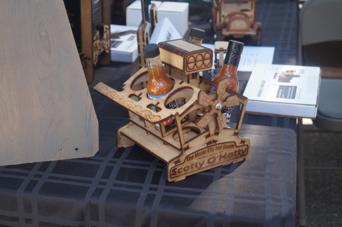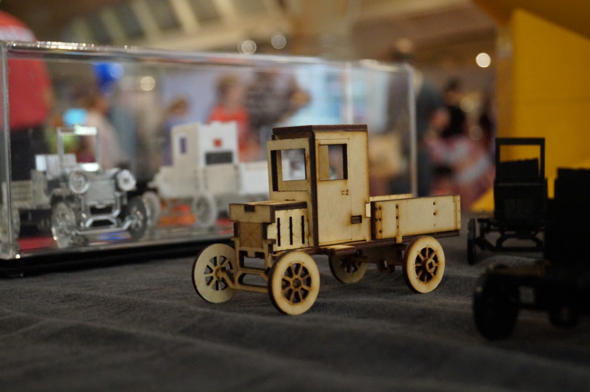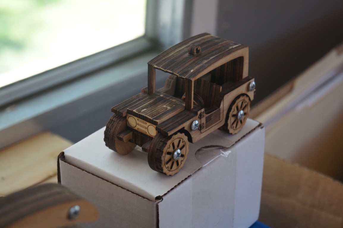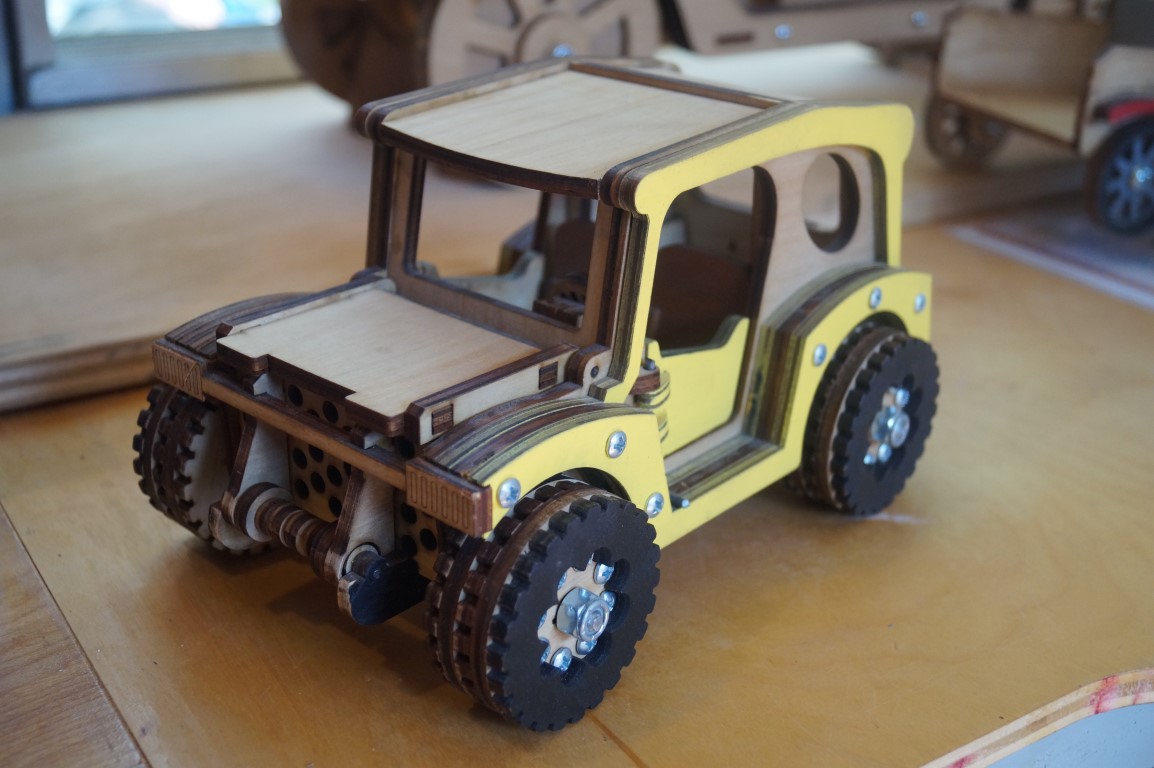 These little wooden truck kits were delightful! They are all laser cut and seem to be fairly easy to assemble, but the final result is also sturdy and, in my opinion, quite nice looking. Jim, above, is posing with one that was his own creation. The only way to enter this vehicle, named “nimble” is to lift the windshield!