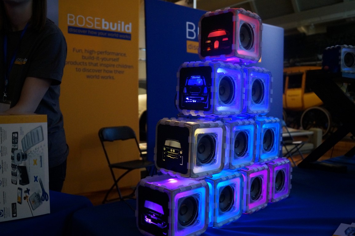 Last year, Bose had these cool speaker kits called Bosebuild, but they were all just simple blocks. This year they’re showing off all kinds of fun 3d printed designs. The kit itself is the lighted cube. You assemble your own speaker and learn about how speakers work and what makes a good one in the process.