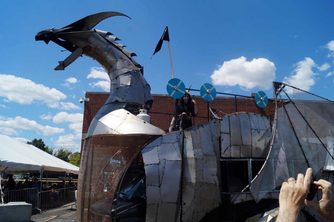 You would not believe hot hot it gets standing near the Heavy Meta dragon car. That woman up top, controlling the bursts, will surely cook if she doesn’t space them out a fair bit!