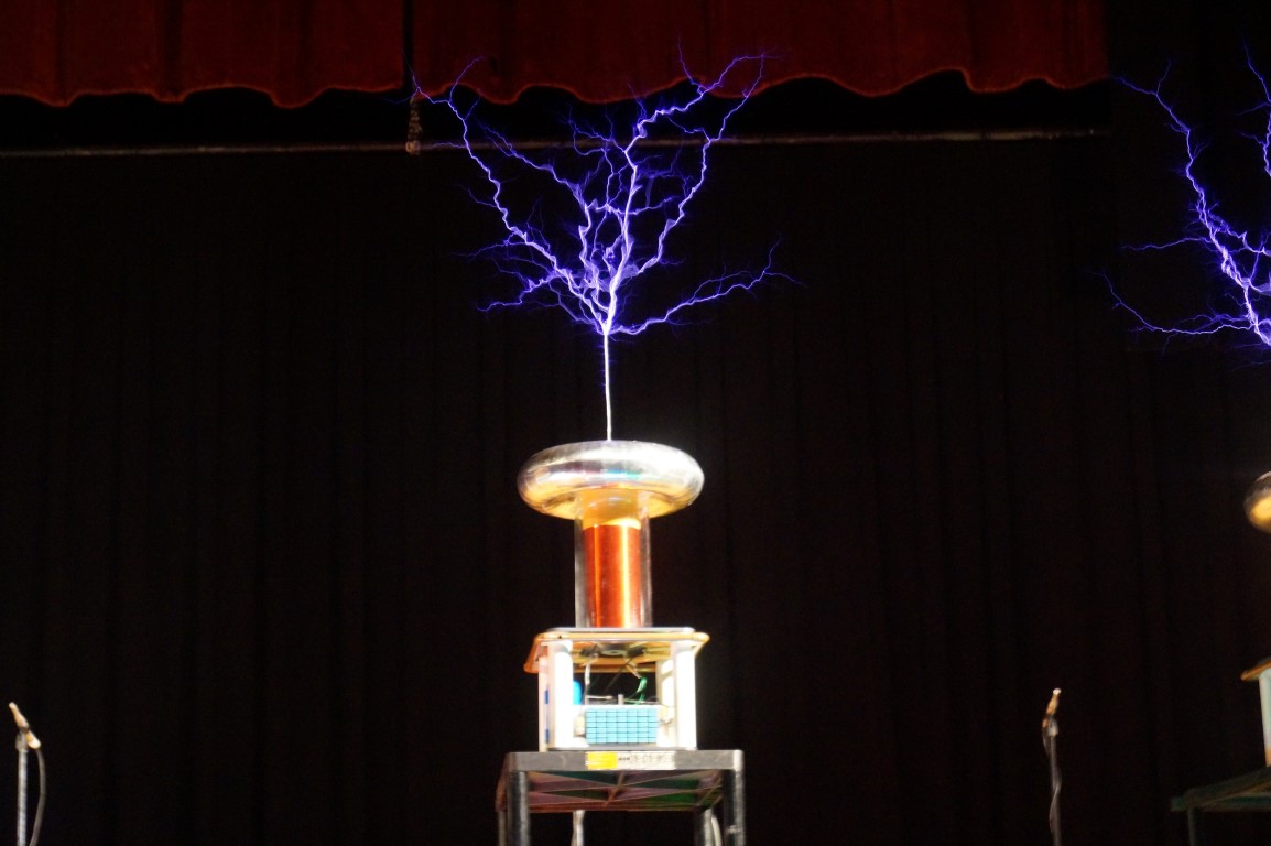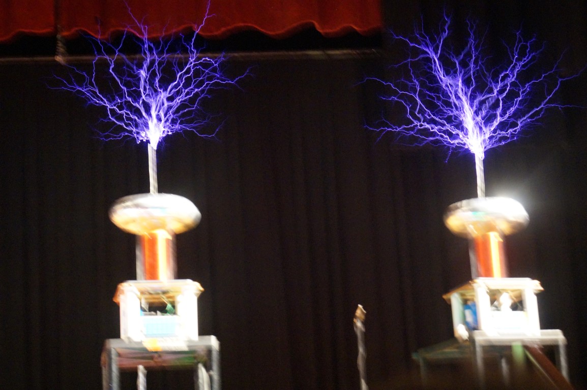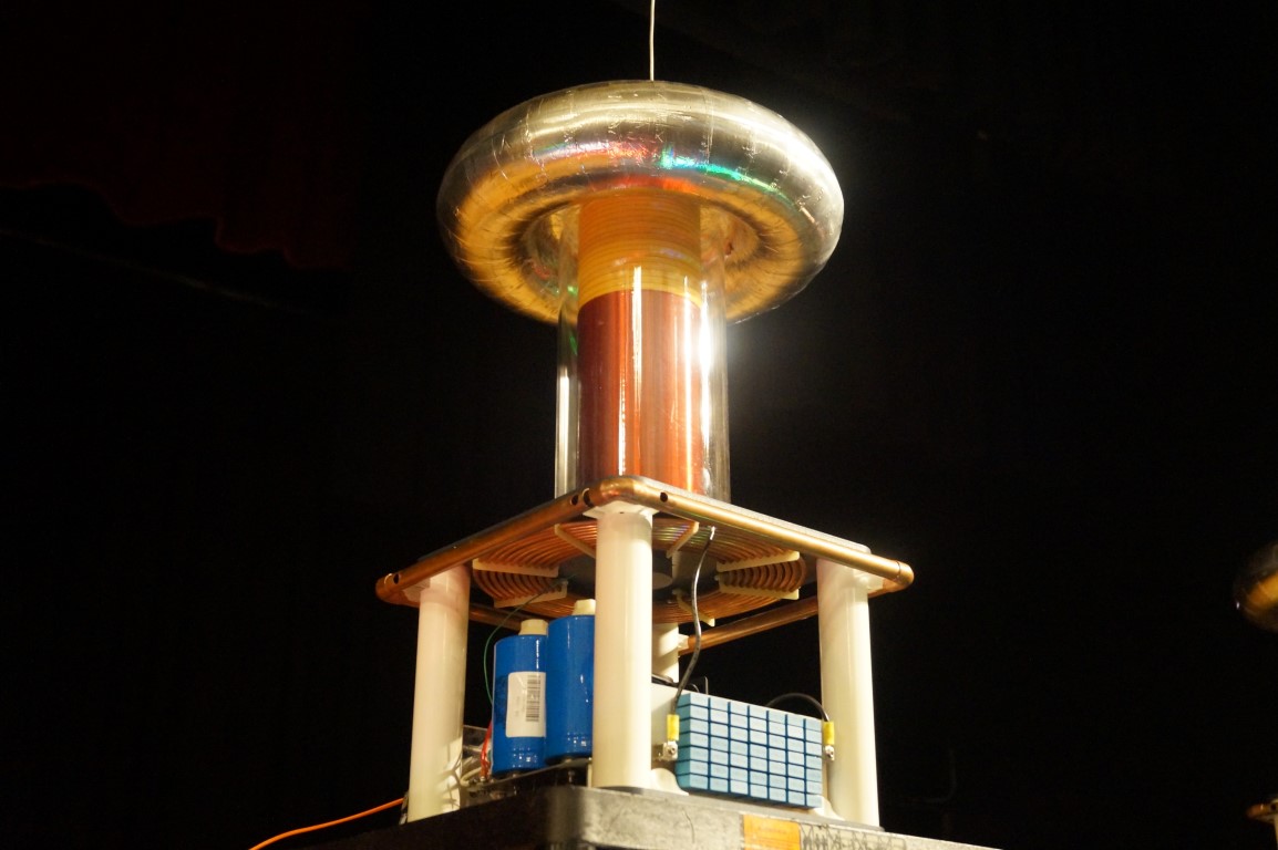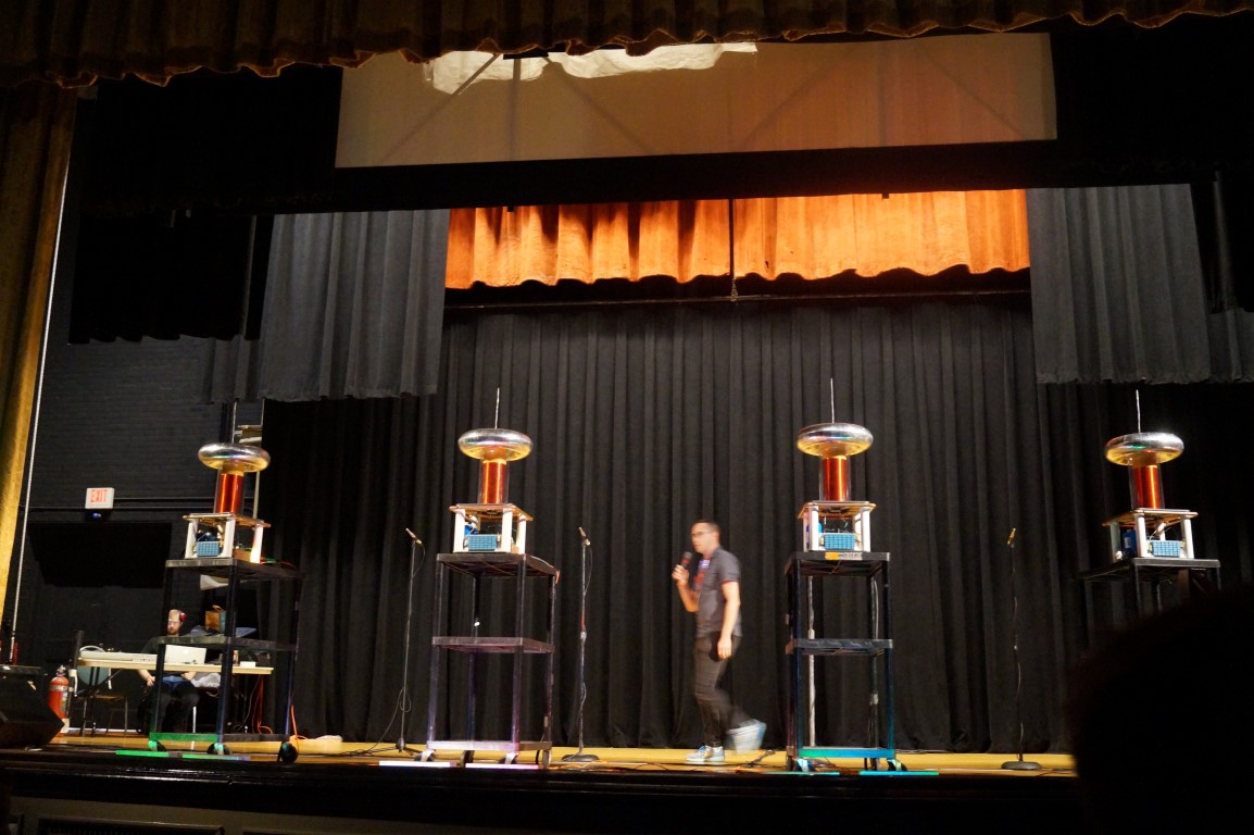 I just finished listening to the Tesla Coil Quartet. Pretty fun show! They do 5 shows a day and no 2 shows are the same. These coils may not be giant, but they’re loud!