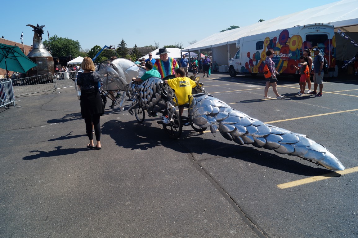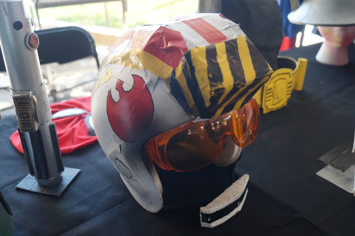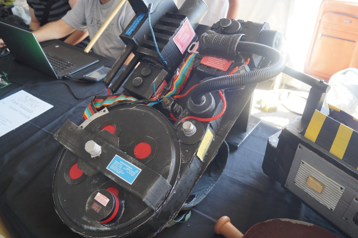located inside the i3Detroit (a local makerspace) tent, I found The Costume Kid. He makes all of his props out of what materials he has on hand, usually variations of duct tape and cardboard.