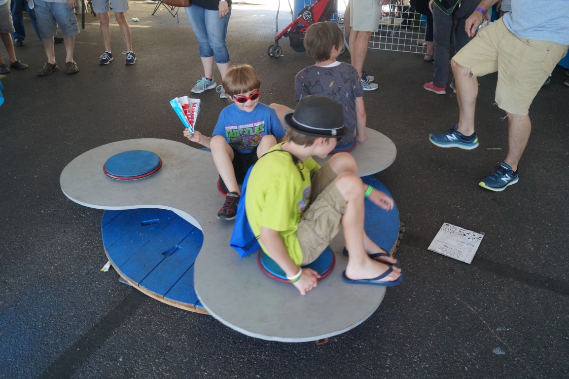 This giant fidget spinner was actually spinning like a merry-go-round! Another in the absolutely packed i3Detroit tent.