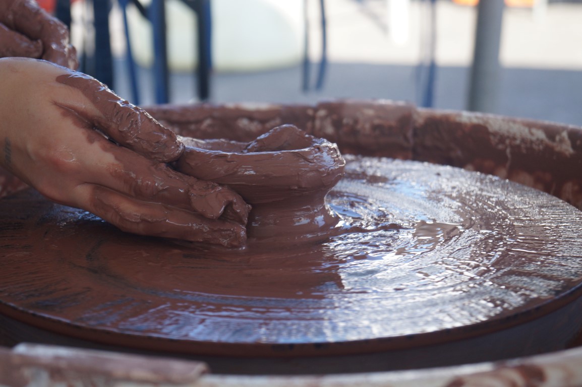 I absolutely love to see people getting messy and learning a new skill. Here, PEWABIC is s teaching people how to make pottery using a wheel. It is much harder than it looks, but so very rewarding.