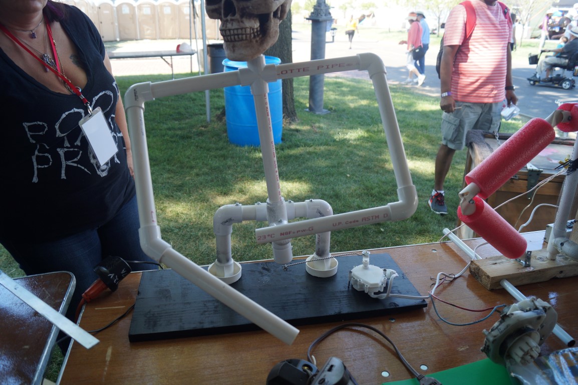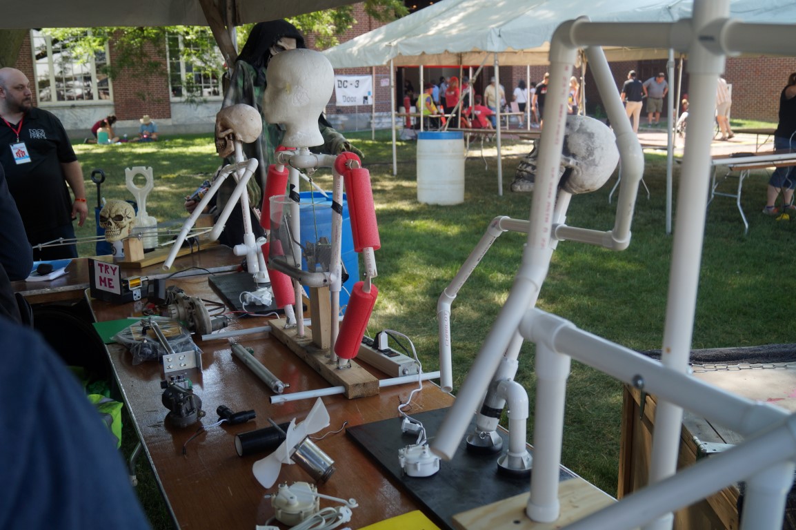 Poor Man Props is a club that designs simple halloween animatronics. These mainly consisted of PVC and a simple DC motor. The ideas were really clever! The cool part is, they publish all the plans for free on the internet.