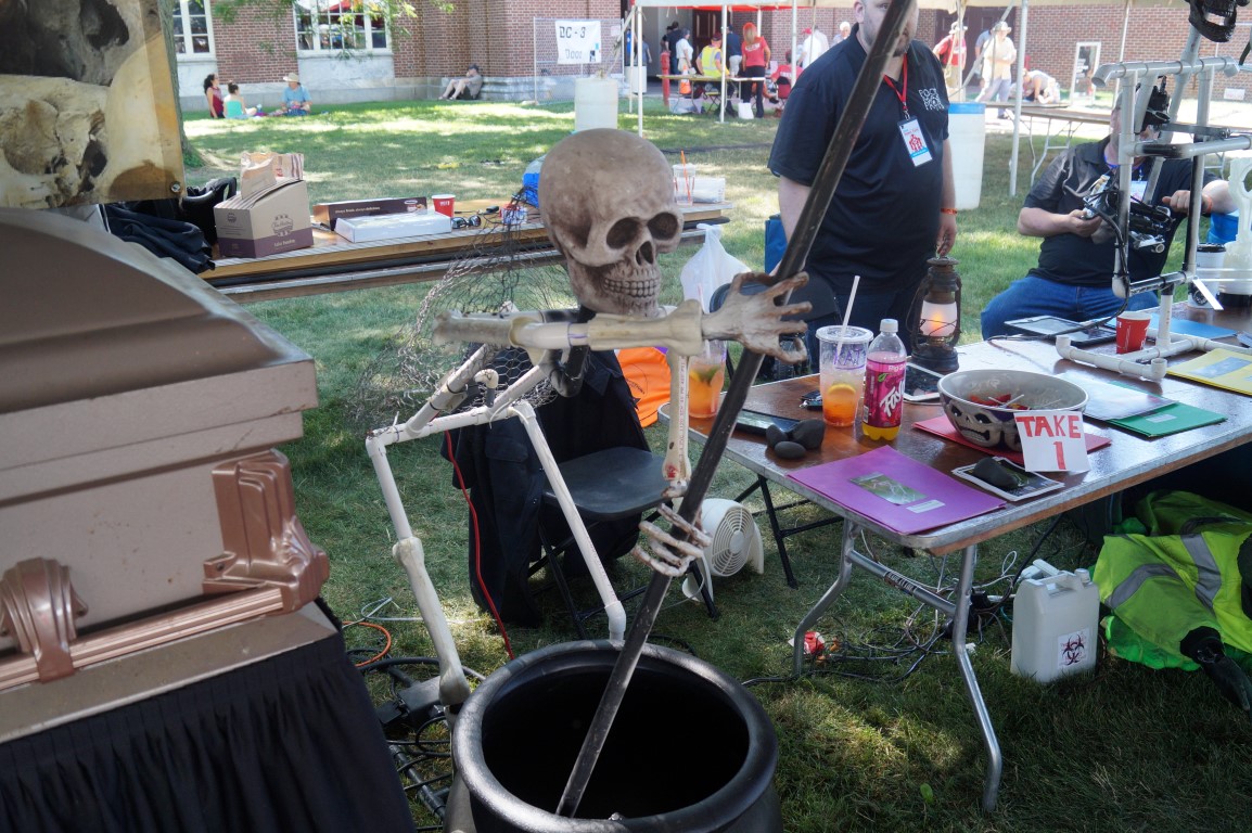 for my final moments at the Detroit Maker Faire, I got to have a lot of fun. We connected to Tim Deagan, author of Make: Fire for a skype interview. He was projected on a massive screen. Tim was easily 30-40 feet tall in this picture. If you look down in the left corner, you can see a man with a red t-shirt standing at the podium, this should give you a sense of the scale!