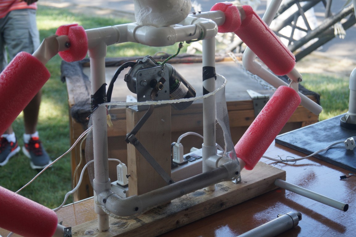 This clamoring contraption was zooming through crowds, blasting music from various speakers and robotic appendages. There are drums, what appears to be a gutted boom box, and of course a human singer. They call this the oxymoronitron. This is only one concoction from the group, you can actually see that it looks like a few mobile pieces strapped together, which I think makes it even more amusing.