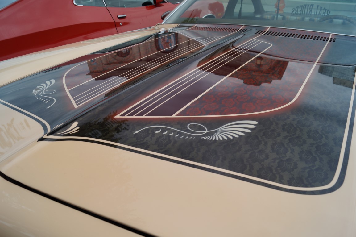- Custom painting – The paint jobs that you see at a car show aren’t just a nice coat of pretty paint. Often, they are multiple layers with hours upon hours of prep work in between. In some cases you’ll see airbrush work that is an absolute work of art. At this show, I was stunned by the “lace work” on some of the cars. That is where you lay lace on a car and spray over it, leaving the pattern behind when you remove the lace.