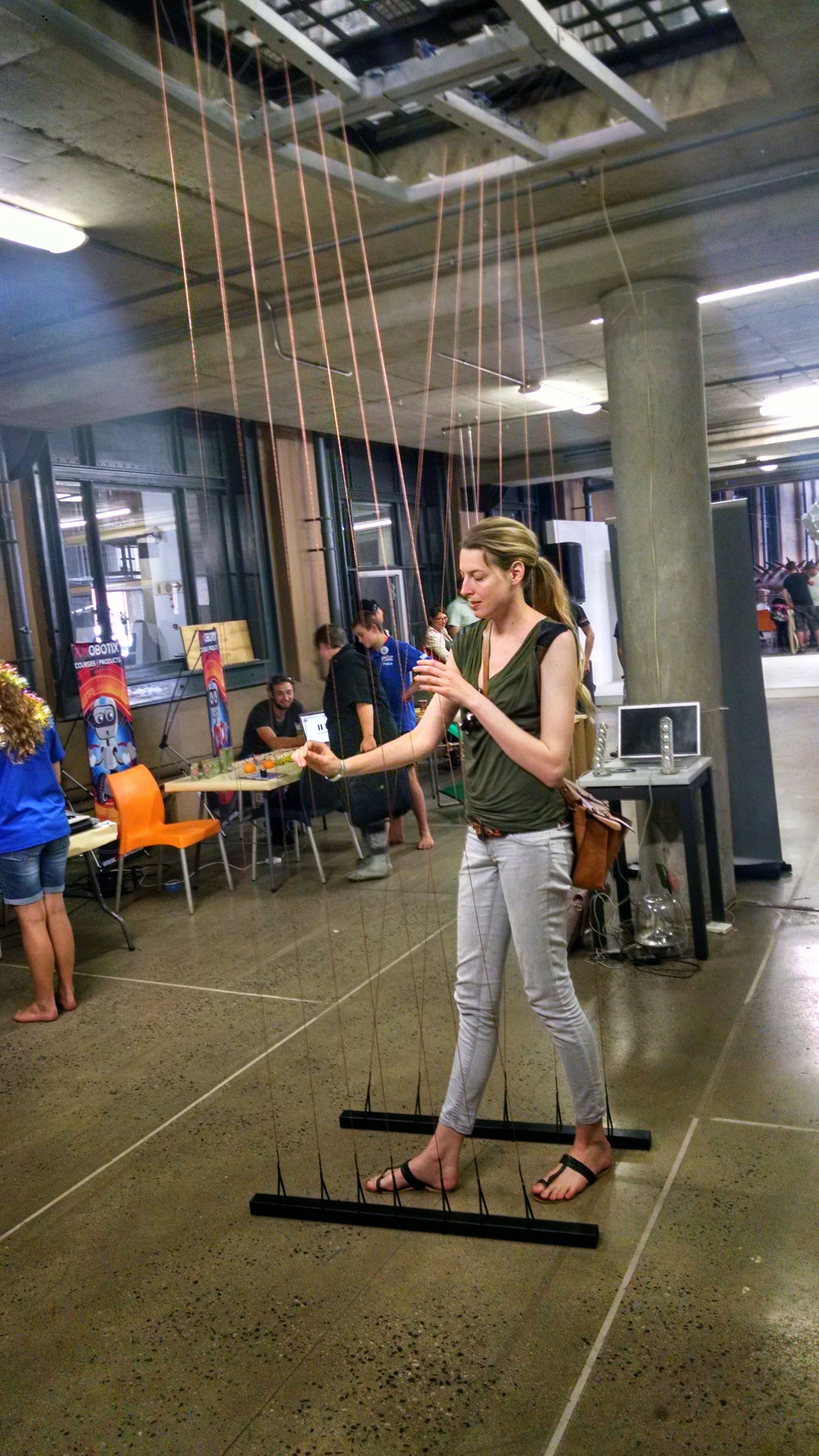 Artiste Jenna Burchell demonstrating a small installation based on her piece Homing, an interactive copper wire instrument. Playing harp all around the city of Johannesburg. She installed a similar piece that I had the chance to see at the World Design Capital in Cape Town. More information on her work: www.jennaburchell.com/artwork/14