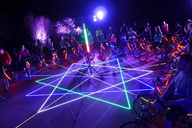Rock the Bike is an Oakland-based company that creates and designs pedal-powered stages for concerts and other events. They have produced over 150 pedal-powered music events and have a reliable system for creating these stages. The music changes every year, but the fun is the same!