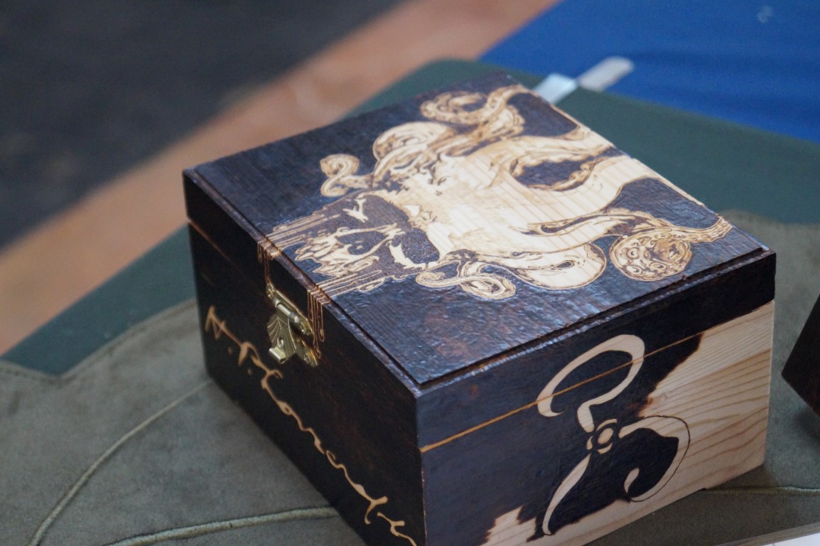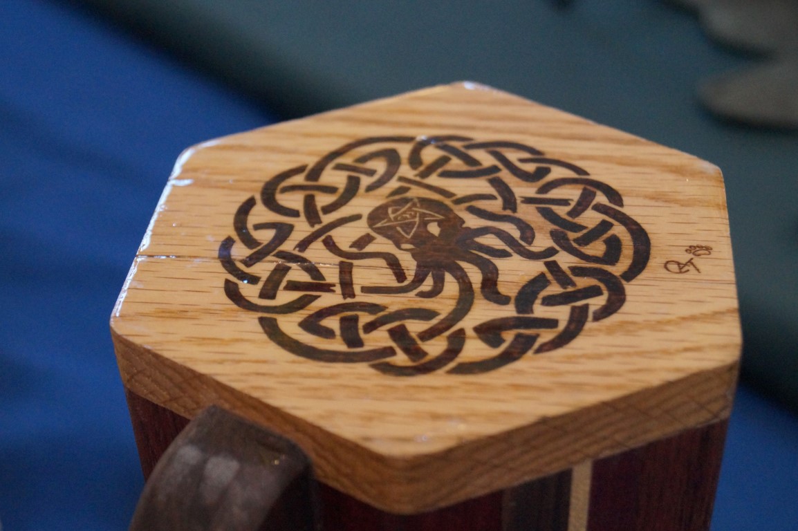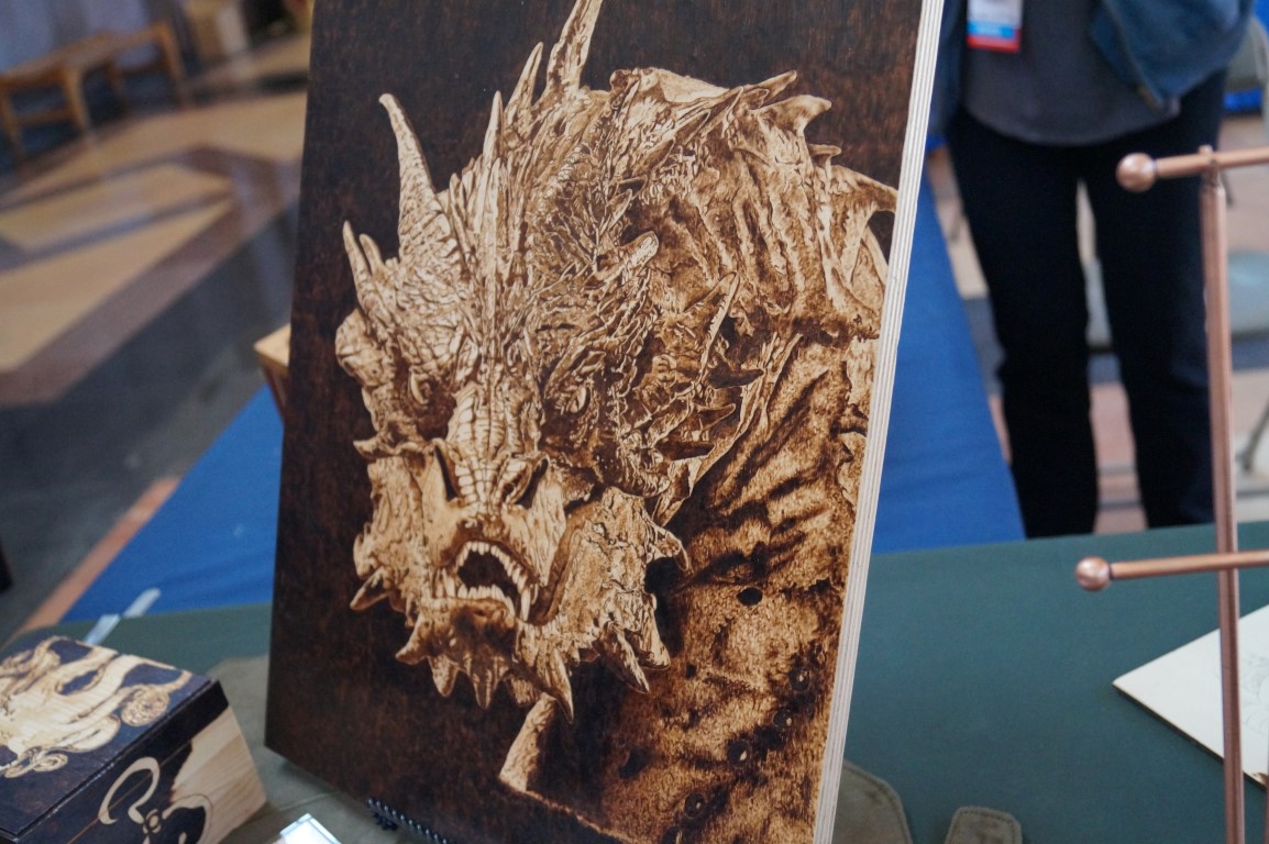 Chelsea is here doing wood burning by hand. I thought these were laser cut designs at first and she says that she’ll have tons of people make that mistake today. Her designs were extremely precise and very impressive.