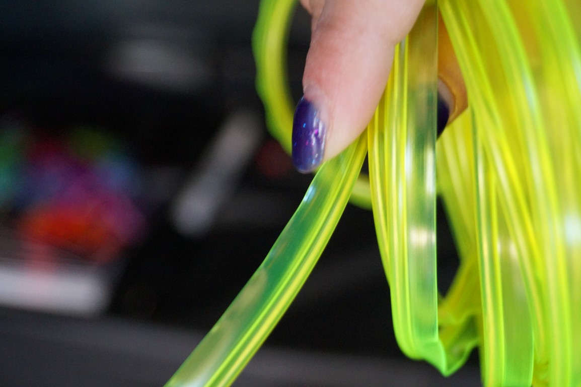 Frustrated by the current offerings of fancy light materials for costuming, these two started Hikari Lights. They have taken care to create electroluminescent materials, called EL tape or EL wire that is much better for use in costumes. They showed me how they completely re-did the connectors and found different shapes and formats that work better for sewing