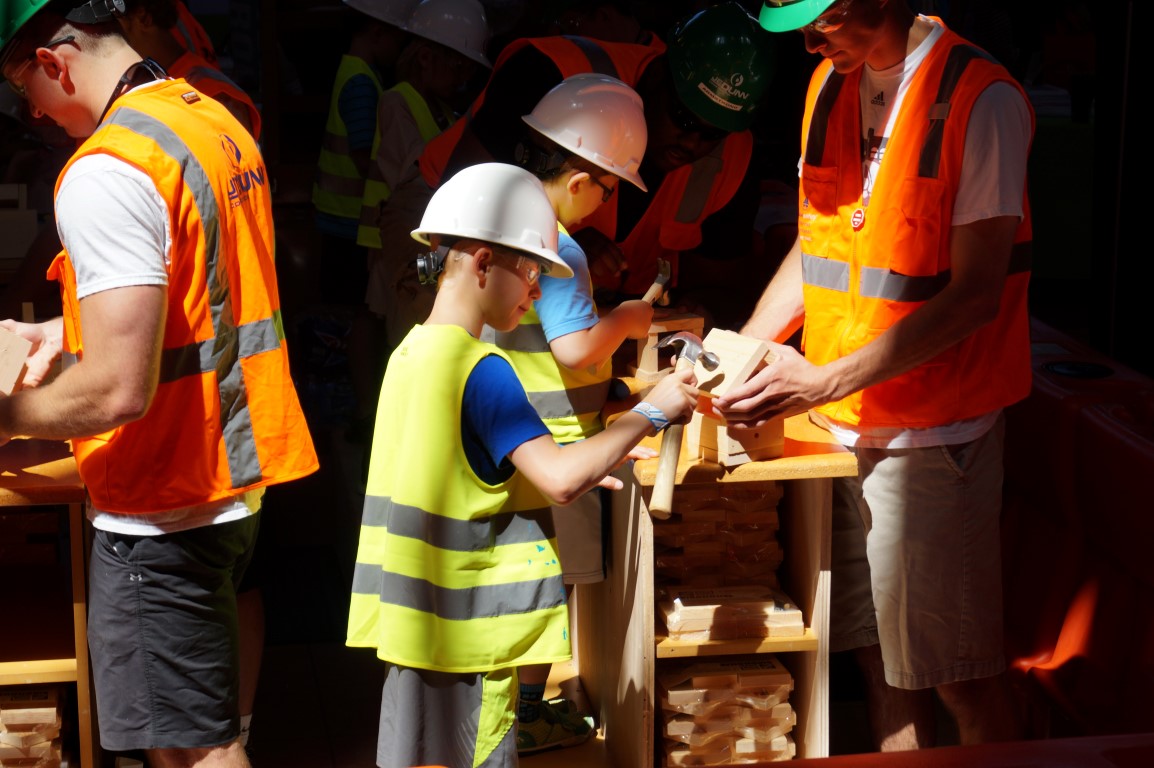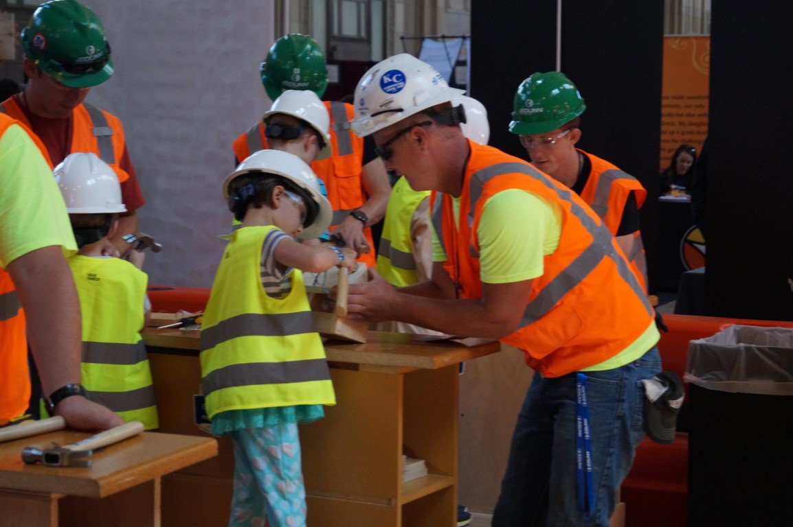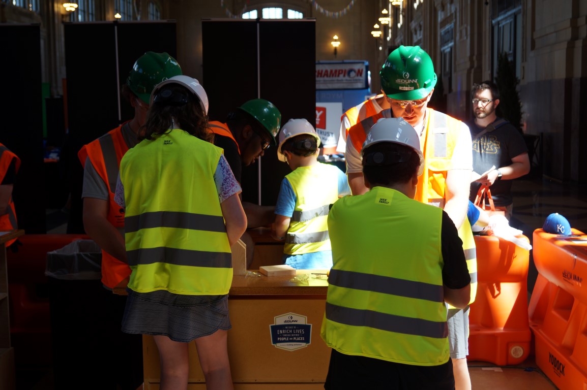 JeDunn construction always does such a fantastic job. Kids put on a hard hat and a vest and get to enter the work zone (behind the big orange dividers) and make something. This area is always packed!