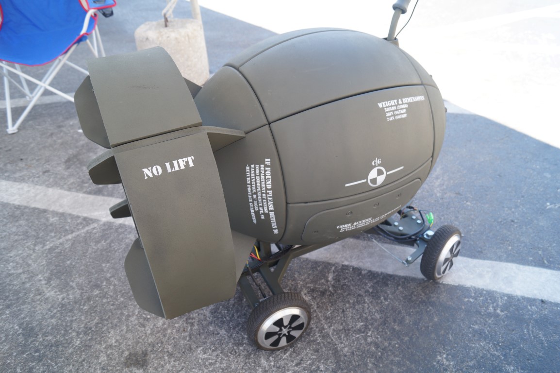Michael Curry showed up with this rideable atomic bomb. It is largely 3d printed, though some parts were made from fiberglass for a bit more structural integrity.