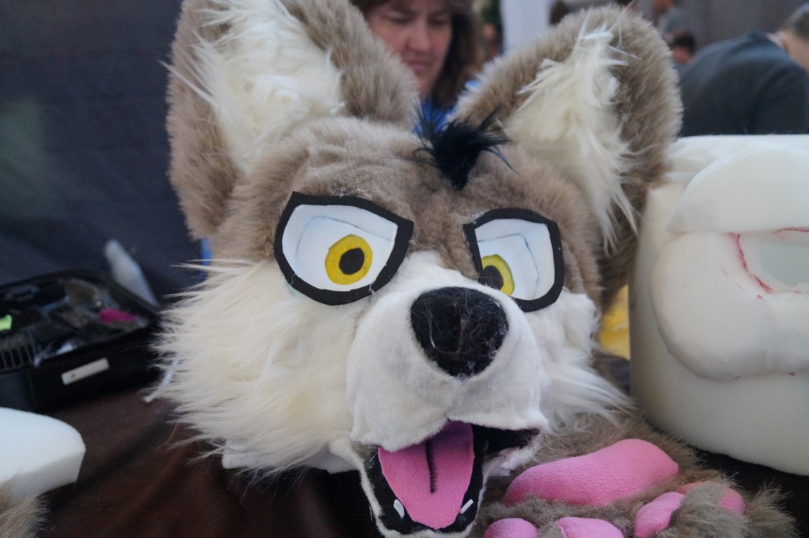 Kinsey was demoing how she creates these costumes from scratch; building up the structures from foam before hand sewing the fur over everything.