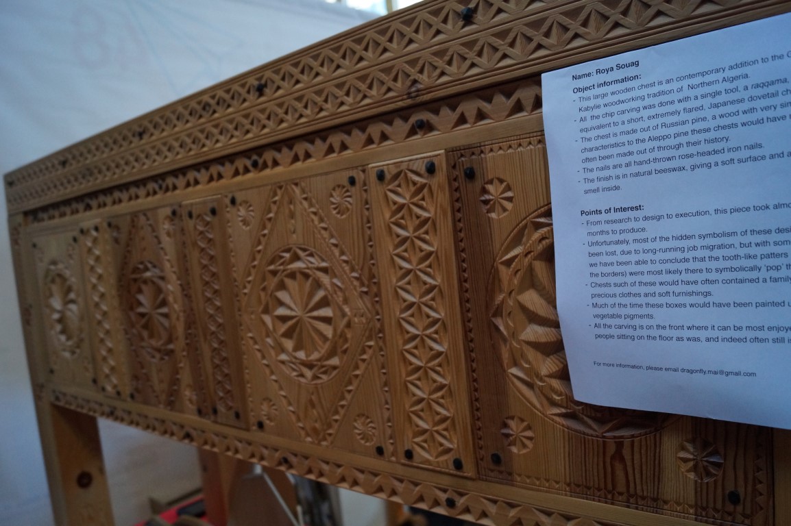 The Kansas City Woodworkers Guild brought some beautiful work and a giant pile of little truck kits for people to build.