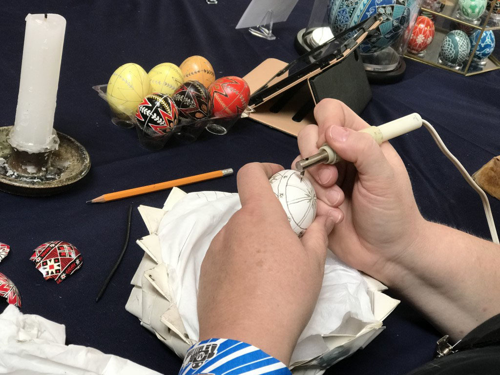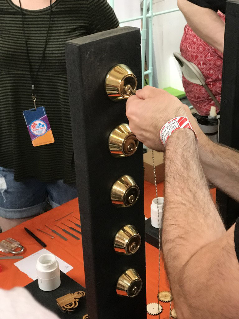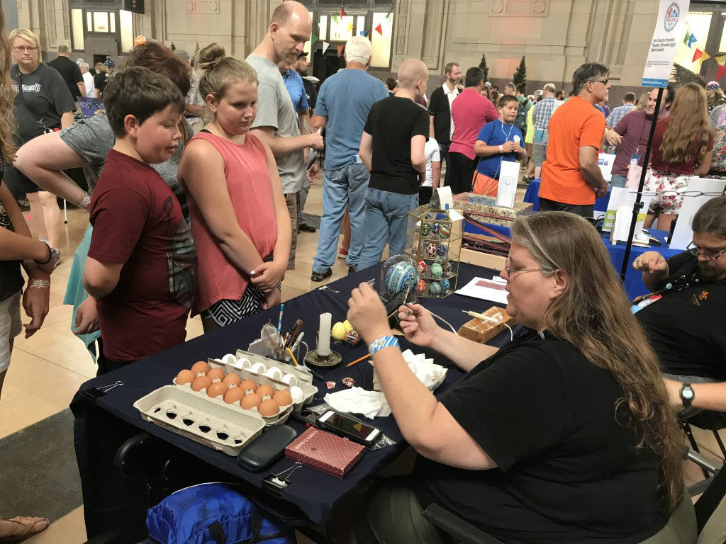 Arch Reactor, a makerspace in St. Louse took the drive over to show off some projects they had been working on. They had a fantastic set up for teaching lock picking and a wide variety of things on display. I was somewhat transfixed by the Ukranian Egg work of Dianne Sudduth.