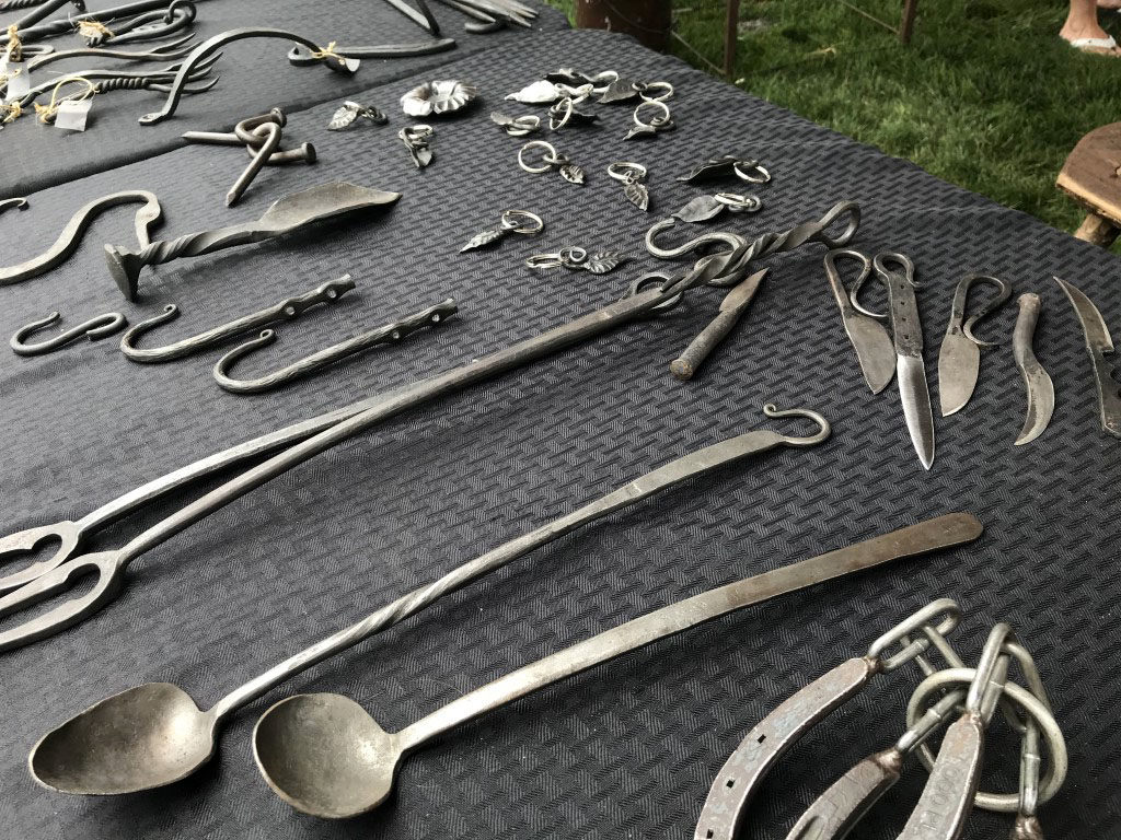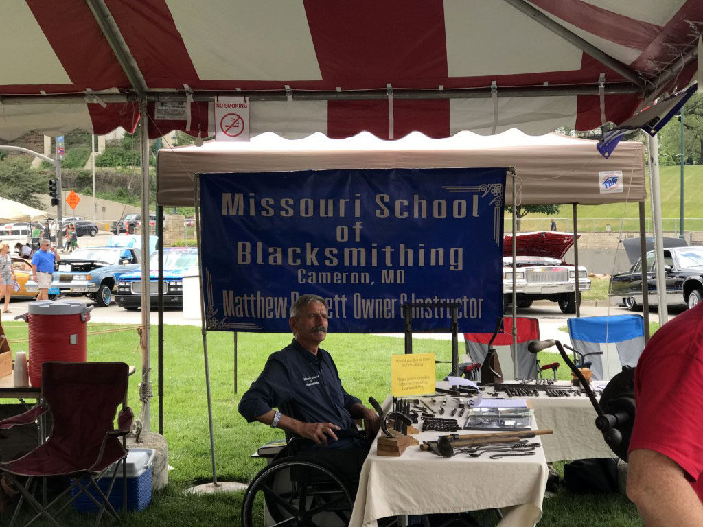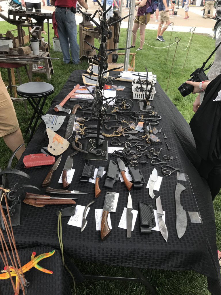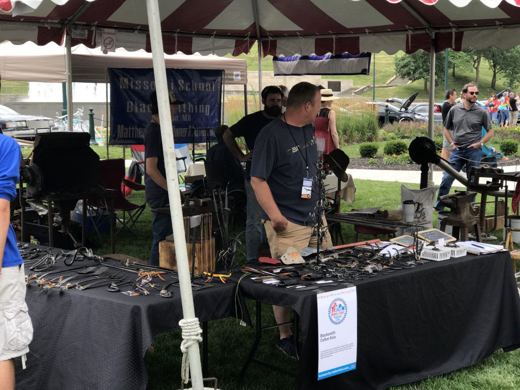 I always love watching the blacksmiths at work. The Missouri School of Blacksmithing from Cameron Missouri always does a fnatastic job of not only showing off the things they make, but also firing up some coals and actually hammering some metal there.