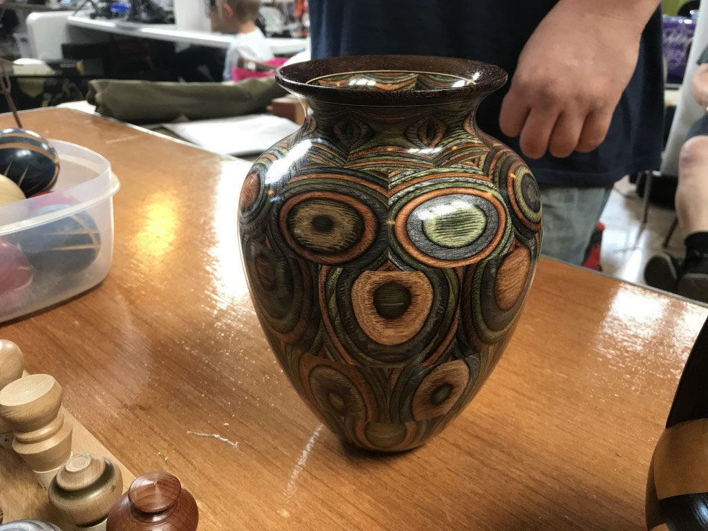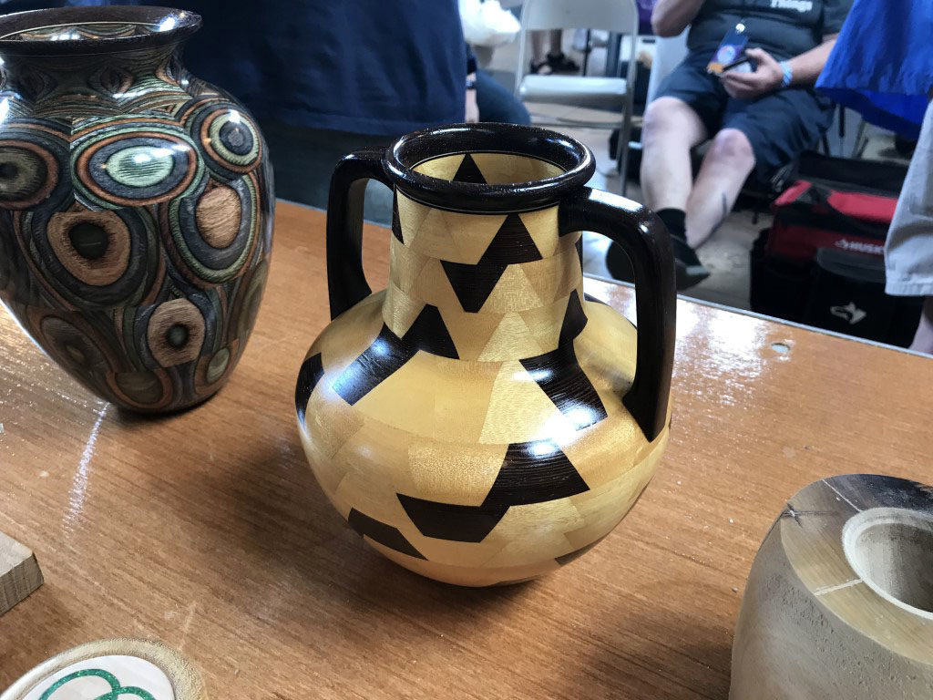 Several wood turning groups were in attendance. I really like how they bring a lathe so people can see the process. This group in particular had a very impressive vase that just had captivating color.