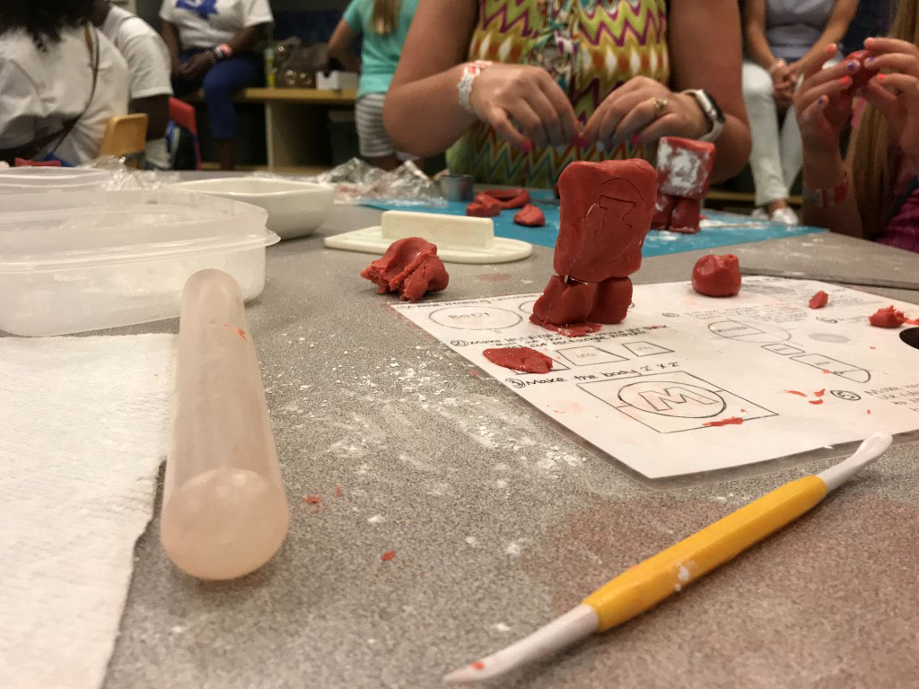 This little ‘Makey’ robot is actually made from chocolate. They had a whole room full of people learning how to sculpt this stuff.