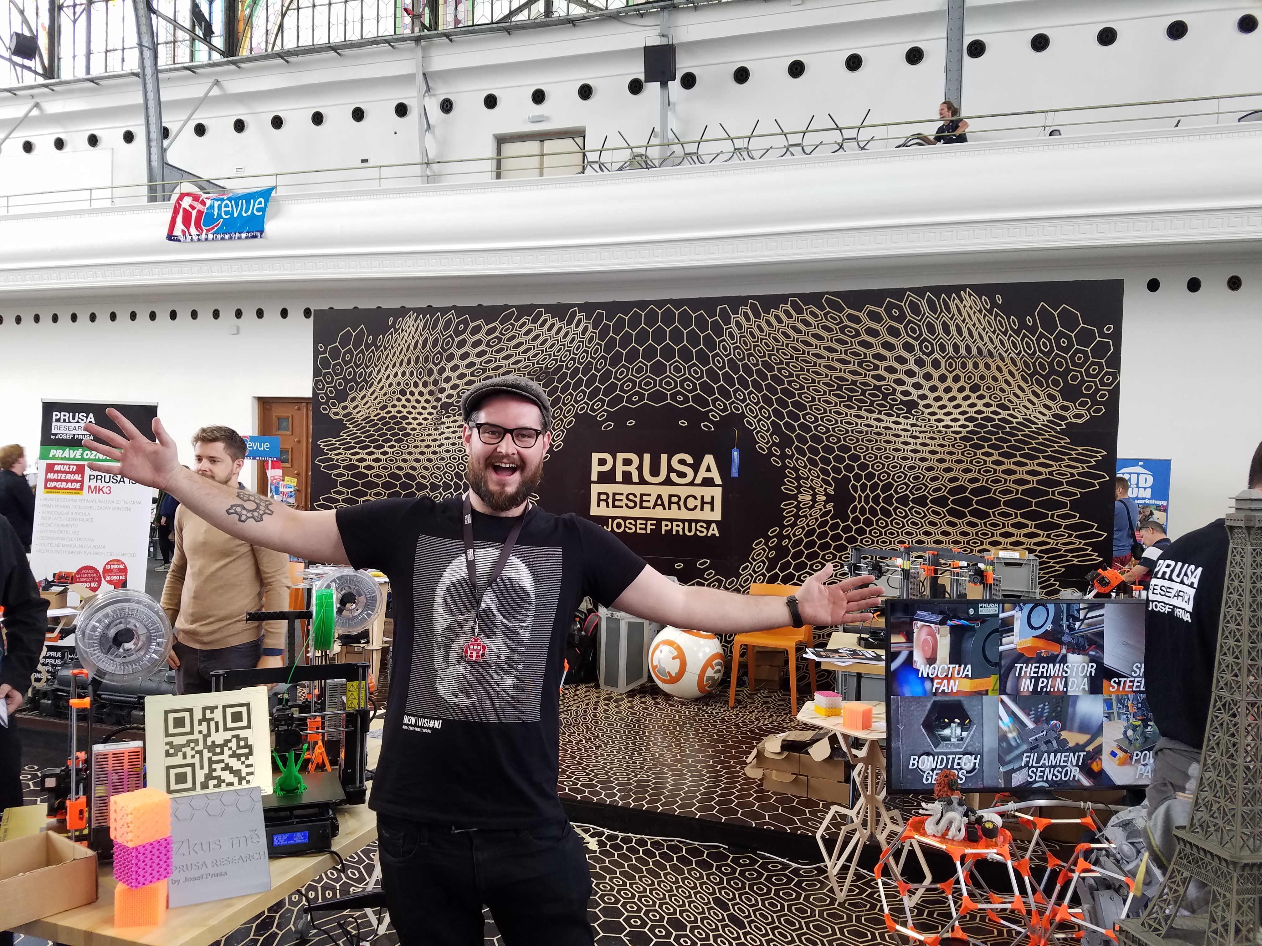 In the center of it all, the Prusa team built a stylish booth with the help of the new CNC machines in their recently launched public makerspace Prusa Labs. When in his booth, Jo was happy to take a moment to pose for pictures with some of his fans.