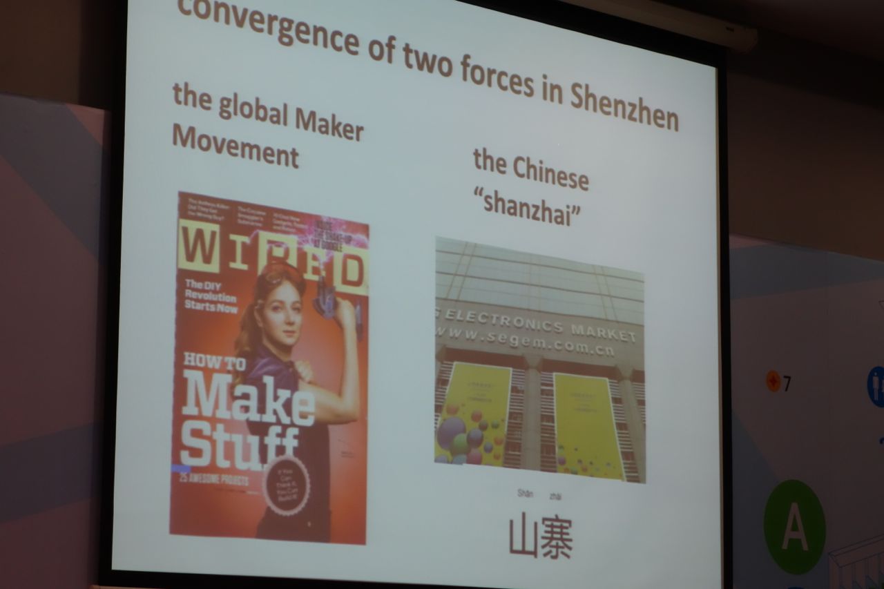 Shenzhen also has its own mindset called “shanzhai,” which several speakers addressed in presentations. Silvia Lindtner, an Austrian at UC Irvine and a co-founder of a Shanghai-base research group called HackedMatter, has been studying shanzai and sees it as a parallel development to the maker movement in China. Sylvia elaborated on shanzai in an email message.