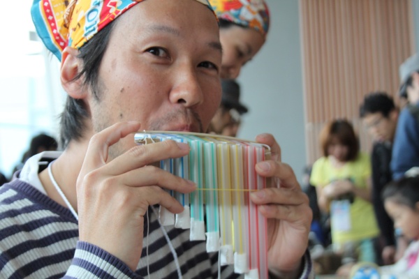 Maker Faire isn’t just a place to see cool projects, you get to try things out yourself. At this pan flute workshop straws, cardboard, and rubber bands are combined into a simple DIY musical instrument.
