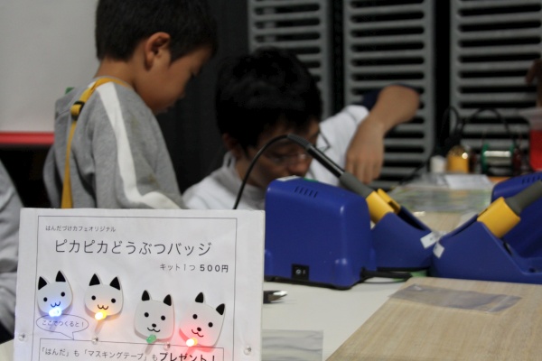 Switch Science, an open hardware company in Tokyo, put on a simple soldering workshop using a neko (cat) badge
