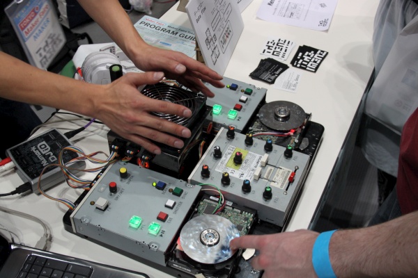 The-Menz is a DJ scratching station using harddrives and other computer parts.