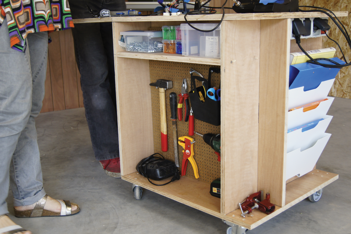 During my second year, we needed to find a place where we could do our internship. Is I was – duh – very FabLab oriented, I wanted to do my internship in a FabLab. The lab in Bruges wasn’t equipped enough back then, and the lab in Leuven was too far away. I went asking around and one of my lectors set me up with Ingegno. The rest is basically history. I could do my internship at Ingegno and later in the academic year write my bachelor’s thesis there. The latter resulted in our ‘MakerUnit’. A workbench made for children that is being used in our lab.