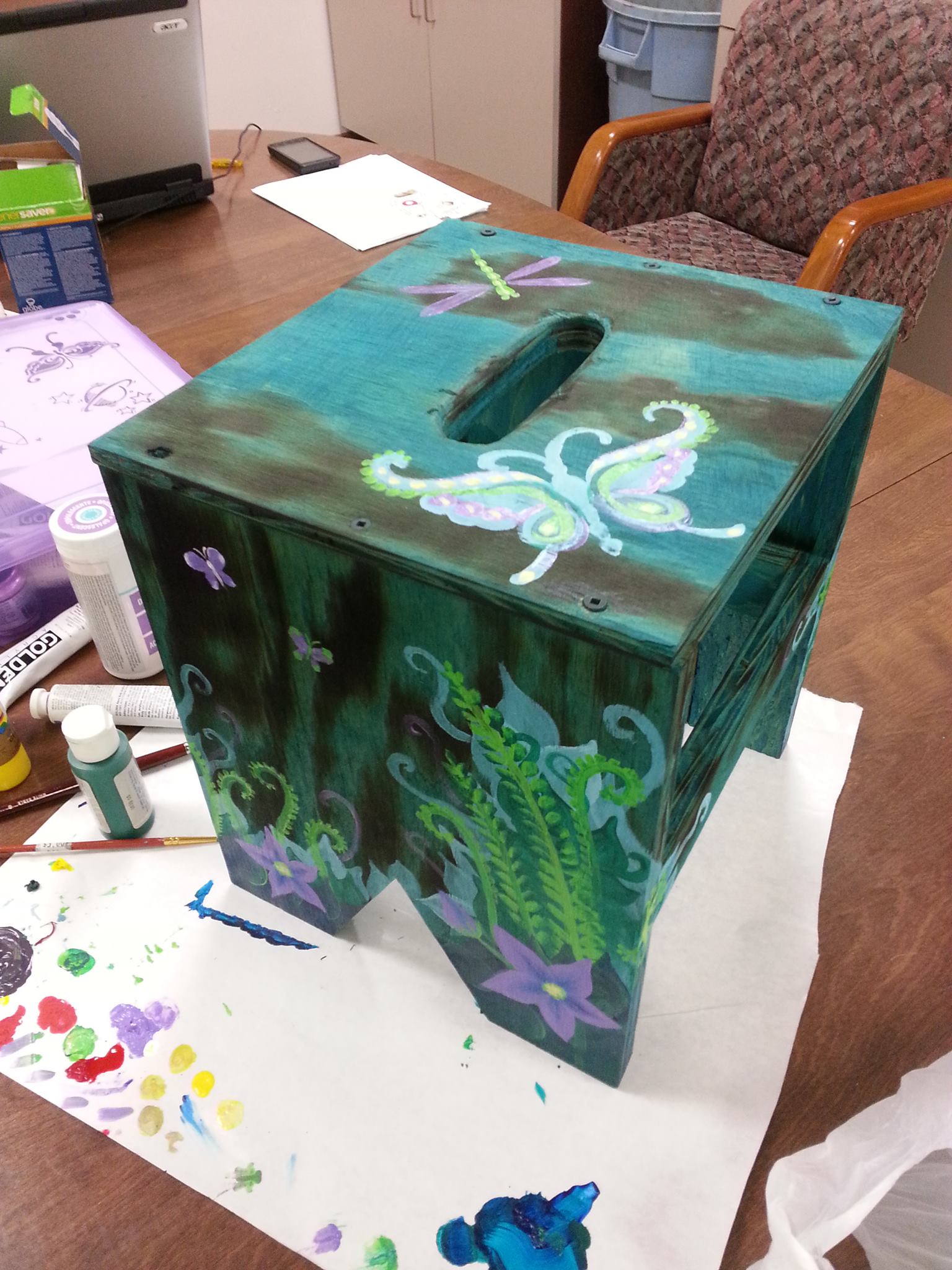 I’m a mixed media artist. I love to make things from stuff others would have thrown away. The wooden totes I am showing off at the Maker Faire this year were made from wood that ended up in the scrap bin at the Milwaukee Makerspace.