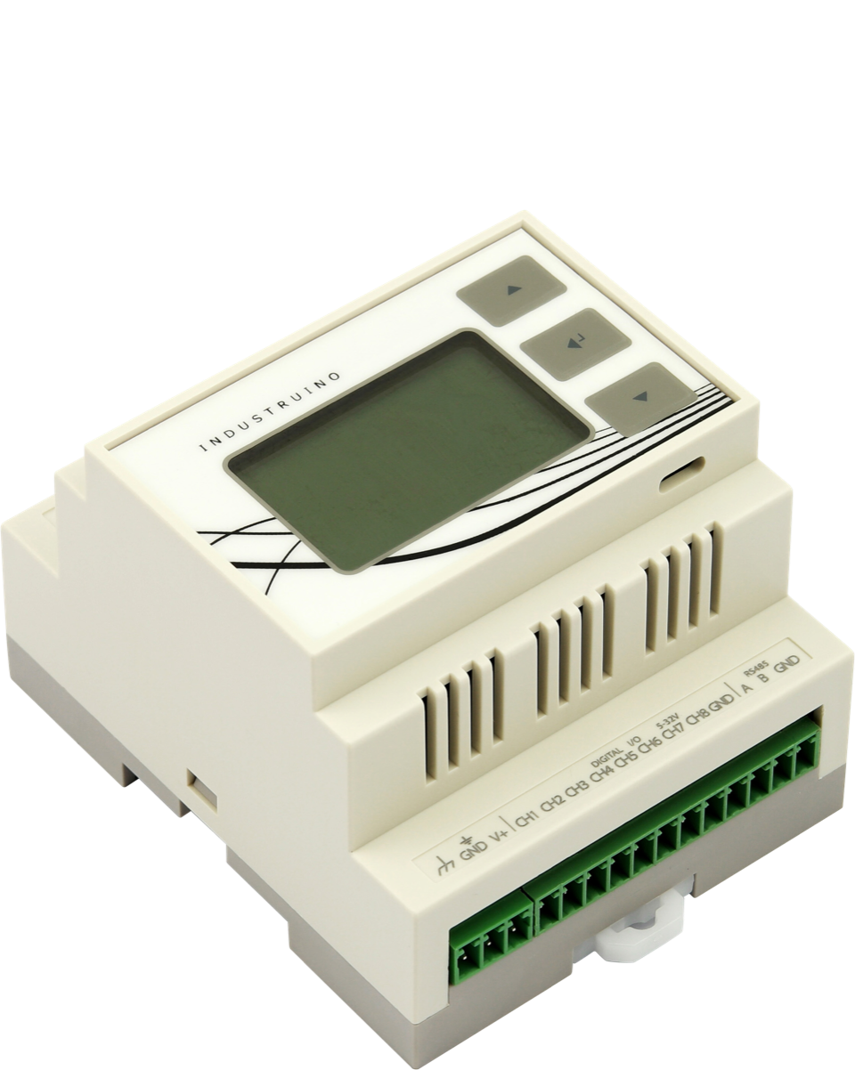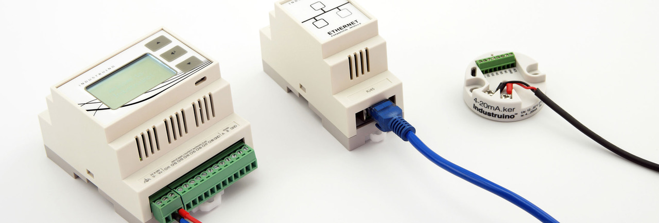 DIN-rail mountable automation controllers and smart sensors that can be programmed with the Arduino IDE.