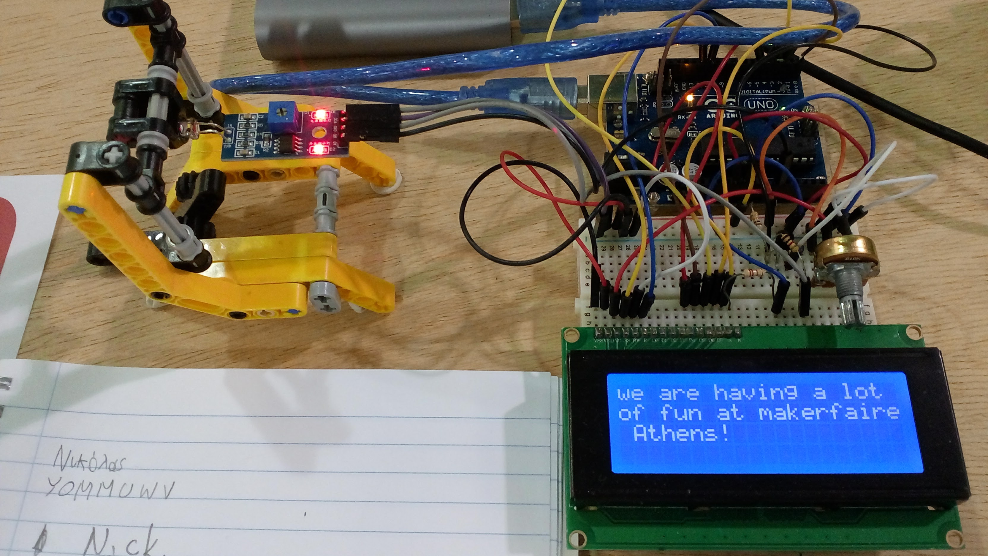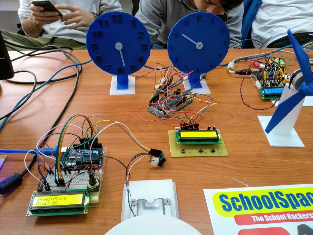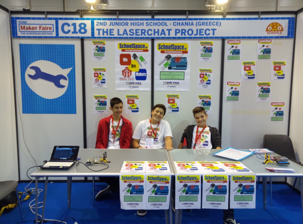 A few years ago, some colleagues and me decided that we can actually do something more interesting in our spare time. We started exploring the idea of forming a hackerspace as a school project, that would use the facilities of a school outside normal teaching hours. It would allow us a lot of freedom in what we teach and experiment with and would be free for any student wishing to attend. We called it SchoolSpace, the school hackerspace and is currently kindly hosted in the 2nd Junior High School of Chania. We meet once a week for a few hours and have tutorial sessions for beginners as well as more advanced projects for our senior members. These advanced projects are most of the time used in local exhibitions and also in Makerfaires. We are attending Makerfaire Rome for the fourth consecutive year!