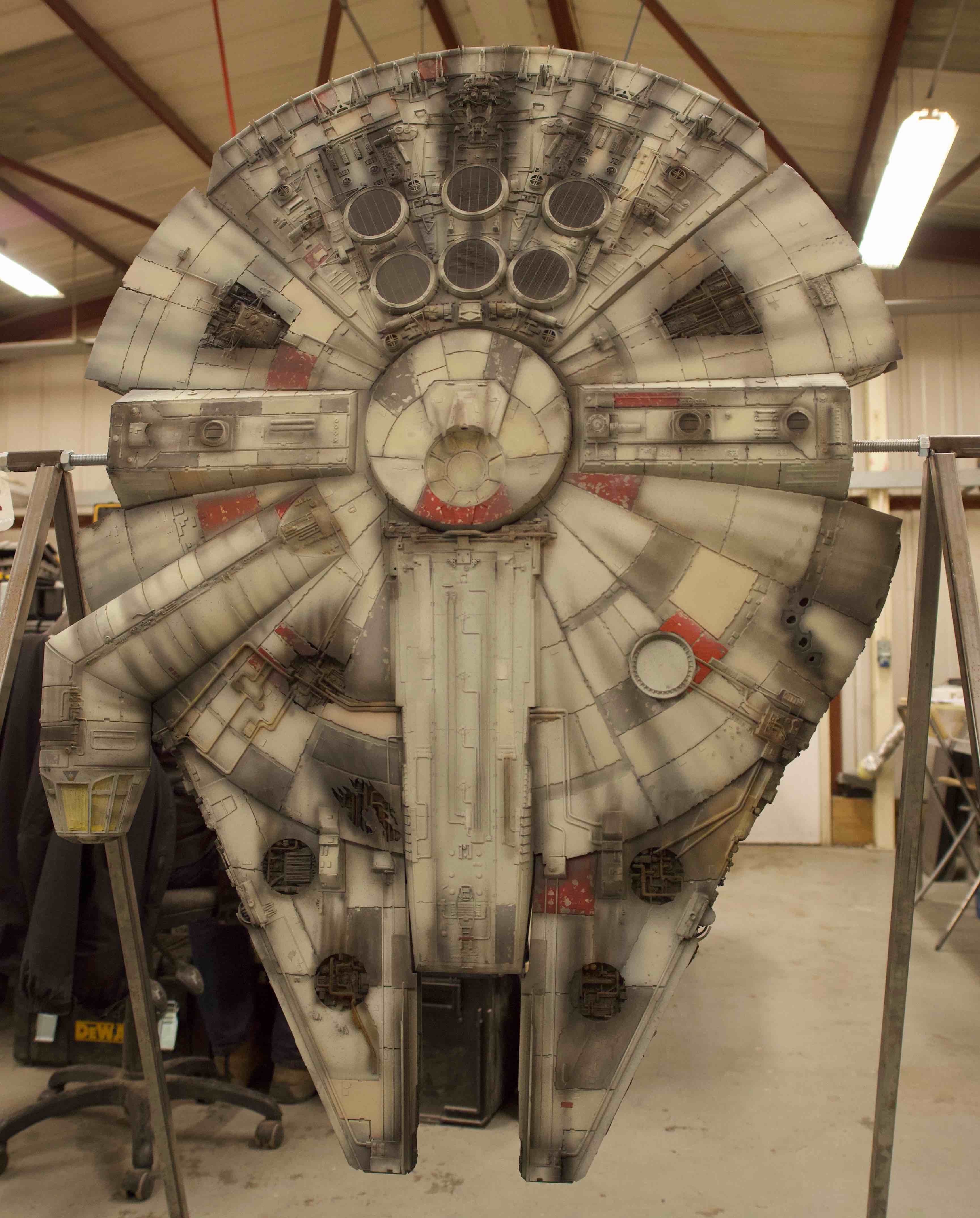 It was decided that the Falcon would be 3D printed within the studios, from the actual original Lucus Film digital plans. The 3D printer was a little out of the ordinary; it happened to the be the largest in Europe!