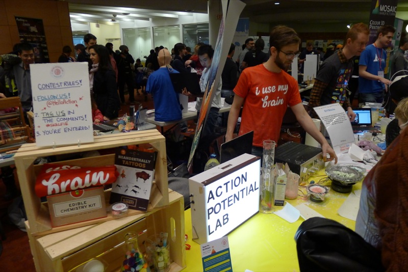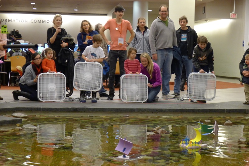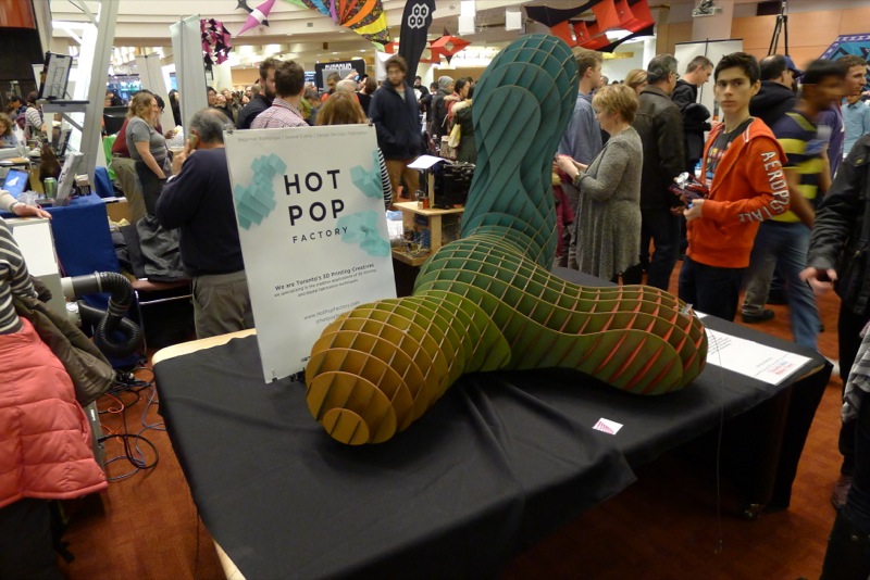 The maker magic began as soon as you stepped in the door. Maker Kids hosted a boat making / boat racing workshop at the Reference Library’s indoor pond. Toronto has a wealth of maker opportunities for kids. Other offerings included a wearables workshop by Kids Learning Code and science experiments and undulating goo from Action Potential Lab. Adult maker & hacker spaces present included InterAccess, Hacklab and Site 3, as well as groups like the Toronto Kite Fliers and the Devil’s Workshop.