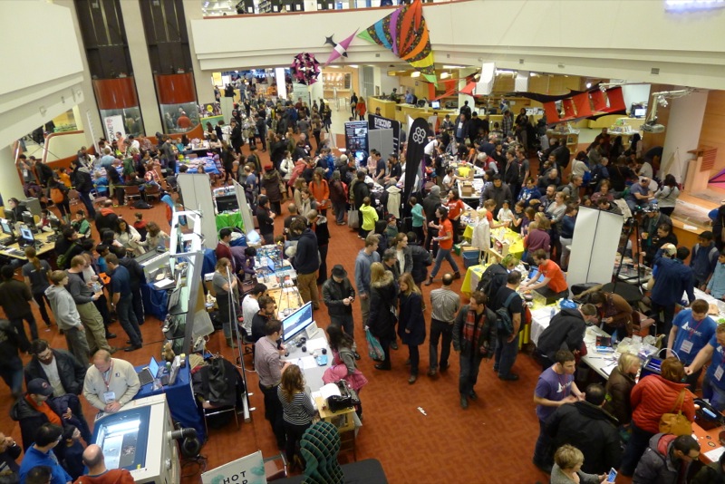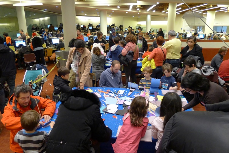 On November 22nd & 23rd I spent inspiring weekend at the Toronto Mini Maker Faire. Now in its third year, this was by far the largest with an estimated attendance of approximately 10,000 people. It was hosted at the Toronto Reference Library, home of some neat new Digital Innovation Hubs. The central location near Yonge & Bloor made this Maker Faire accessible to a fantastically broad and diverse audience. And what fun to see Makers showing their stuff between the stacks!