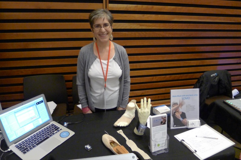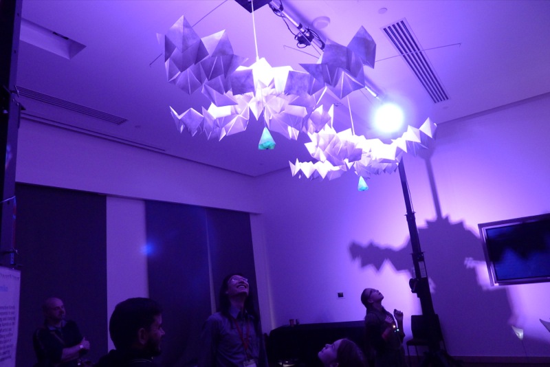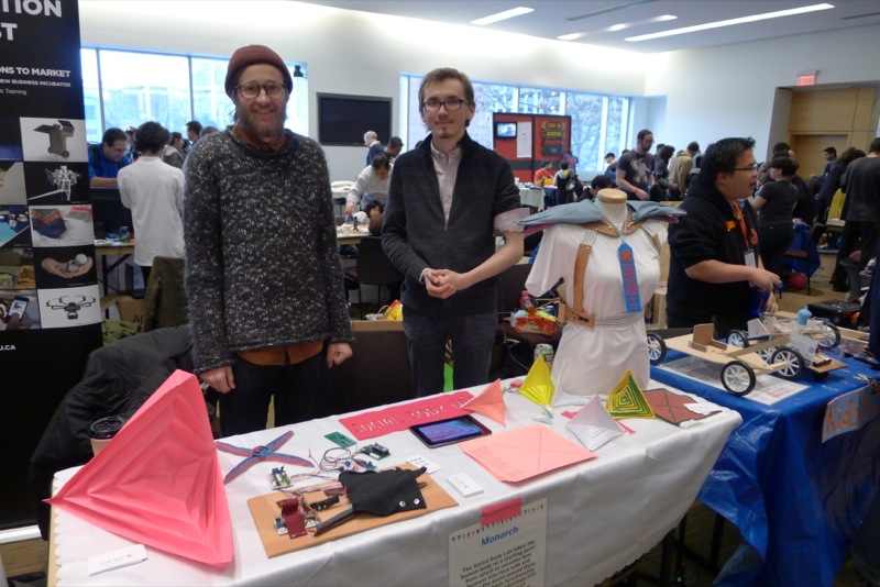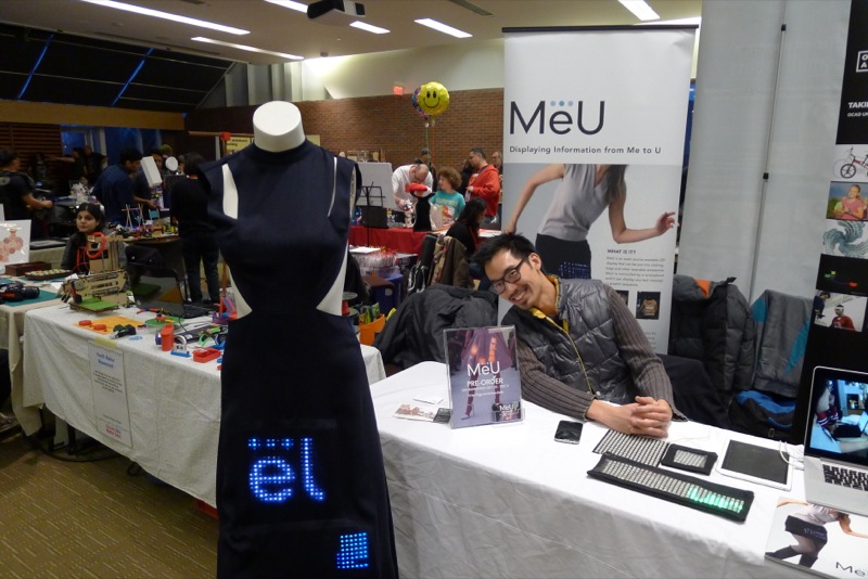There was also a rich assortment of design, art, and engineering projects. Some of my favorites included Little Robot Friends by Aesthetec, Kamiko by Karlen Chang, Blush Wale by Hot Pop Factory, Rainbow Gun 2.0 by Alex Leitch, and the adorable and infamous Hitchbot. Wearables were also well-represented. My own Social Body Lab presented Monarch – our latest muscle-activated kinetic textile. Loretta Faveri demonstrated and spoke about SoMo – a wearable midi controller for dancers. And Robert Tu showed off his line of MeU garments – wireless wearable LED matrices. Be sure to check out the slideshow below for more projects.