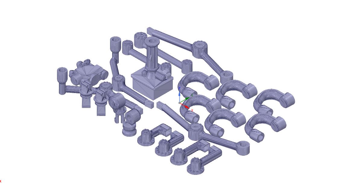 Here are previews of the complex models, nicely arranged for easy printing. If you want, you can actually load each piece individually for printing at a larger scale.