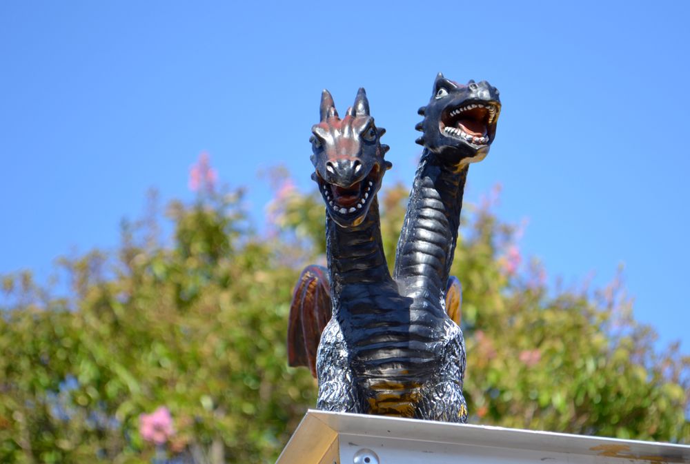 The Sharky-Go-Round is a forged steel interactive sculpture. Blacksmith Kirk McNeill created the piece to take the viewer beneath the ocean to appreciate the beauty of these animals and as a condemnation of the heinous act of shark finning.