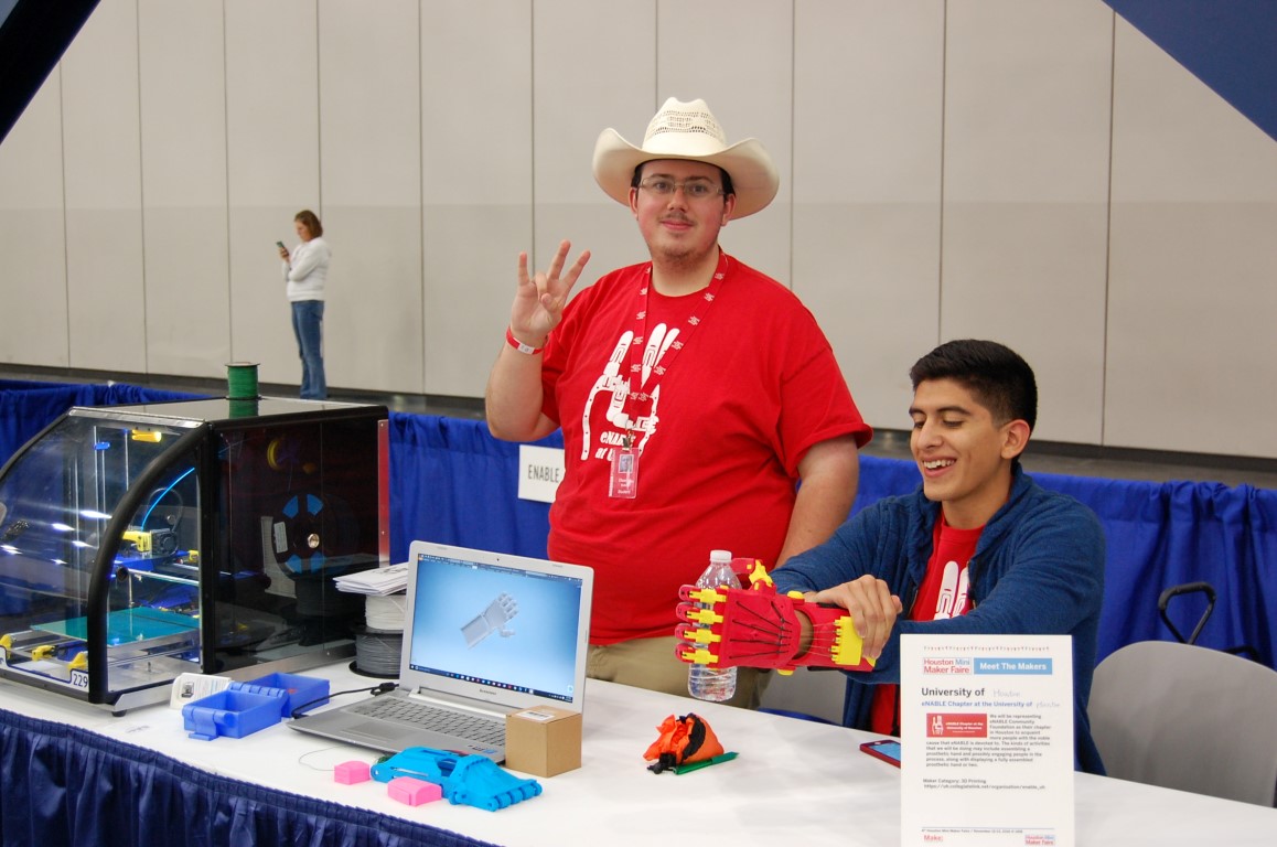 The Houston-area Maker Movement actively delivers a wide range of beneficial community impacts. We invited several different community-service organizations to exhibit at Houston Mini Maker Faire, to better connect and engage with attendees and fellow makers. The Neighborhood Centers, one of Houston’s largest charities, demonstrated their vision of using makerspace education for economic development and job skills. Creativity Shell, a new makerspace dedicated to the textile arts, provides outreach programs to teach valuable job skills to youth rescued from homelessness and human trafficking. Jose Gomez-Marquez, who leads MIT’s Little Devices Lab and MakerNurse (an international “community of inventive nurses who are creating solutions to improve patient care every day”), shared how Maker technology is being used to bring important medical solutions cost-effectively to communities around the world, including advanced diagnostic testing capabilities. Andrew Maxwell-Parish showed examples of how the first makerspace in a hospital in the US, the MakerNurse branch at UTMB Galveston, is used to improve hospital care, services and staff learning. The Houston chapter of Engineers Without Borders shared how they use applied engineering to create innovative low-cost solutions to address critical community needs around the world. The eNABLE Chapter at the University of Houston demonstrated many of the steps involved in the charitable work they do to build 3D-printed prosthetic hands for people in need. And Living Water International and Water Relief Networks, two large Houston-based globally-active water ministries, vividly demonstrated what it’s like to live without the abundance and convenience we take for granted in the US — and collaborated with us to design the Hackathon challenges to show how Maker ingenuity can improve the quality of health and life in “Third World” countries (more about this, below).