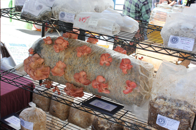 Finally, there were some living things at the event, including planters and some exotic-looking mushrooms. A guy who was definitely not shy about being photographed was there with a large snake, as well as a woman with what looked like a possum. On the other side of the spectrum, I was able to get a picture of an adorable puppy below someone’s exhibit. Maybe I’m not adventurous enough, but I found that much more interesting than the other two.