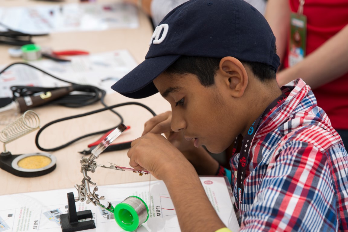 Once you stepped inside, you could clearly see that LG gets the maker mentality. Sure, they want to show off their products, but they didn’t just haul in their appliances and talk about how great they are. They literally ripped parts from them and let makers build things with these parts. You could create characters to race on washing machine motors, and make little decorative light and sound boards with LG displays. People were learning to solder and having fun. To top it all off, they had a cool little printer so you could take a picture of your racing creation and take a print with you, like an old Polaroid.
