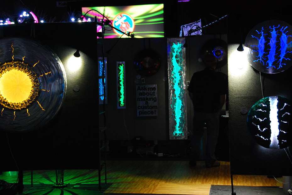The Faire’s Dark Room, housed in Fiesta Hall, proved to be both meditative and stimulating. Shimmering lights flashed through the darkness as young ones danced with long fiber optic rainbows. The Dark Room was also home to some of the most engaging visual and auditory presentations at the Faire, namely the MakeFashion Show and DJ QBert.