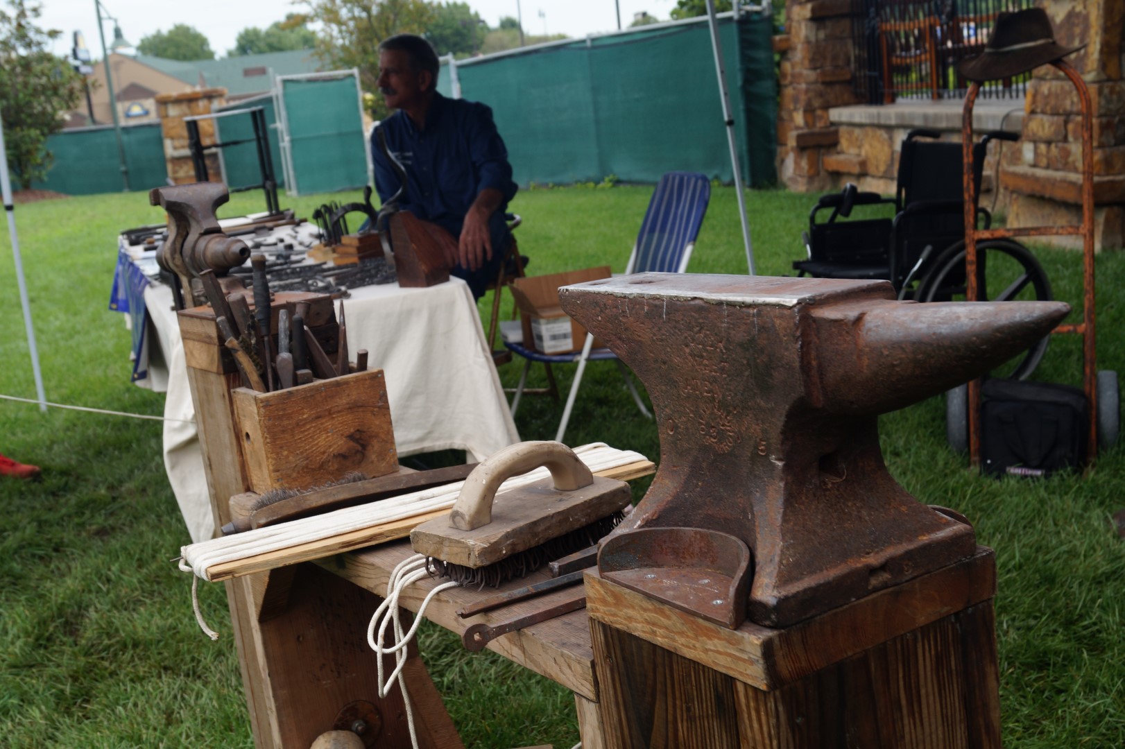 Metthew Burnett brought out the whole rig to show people how blacksmiths forge metal into shapes. The examples he showed were quite nice.