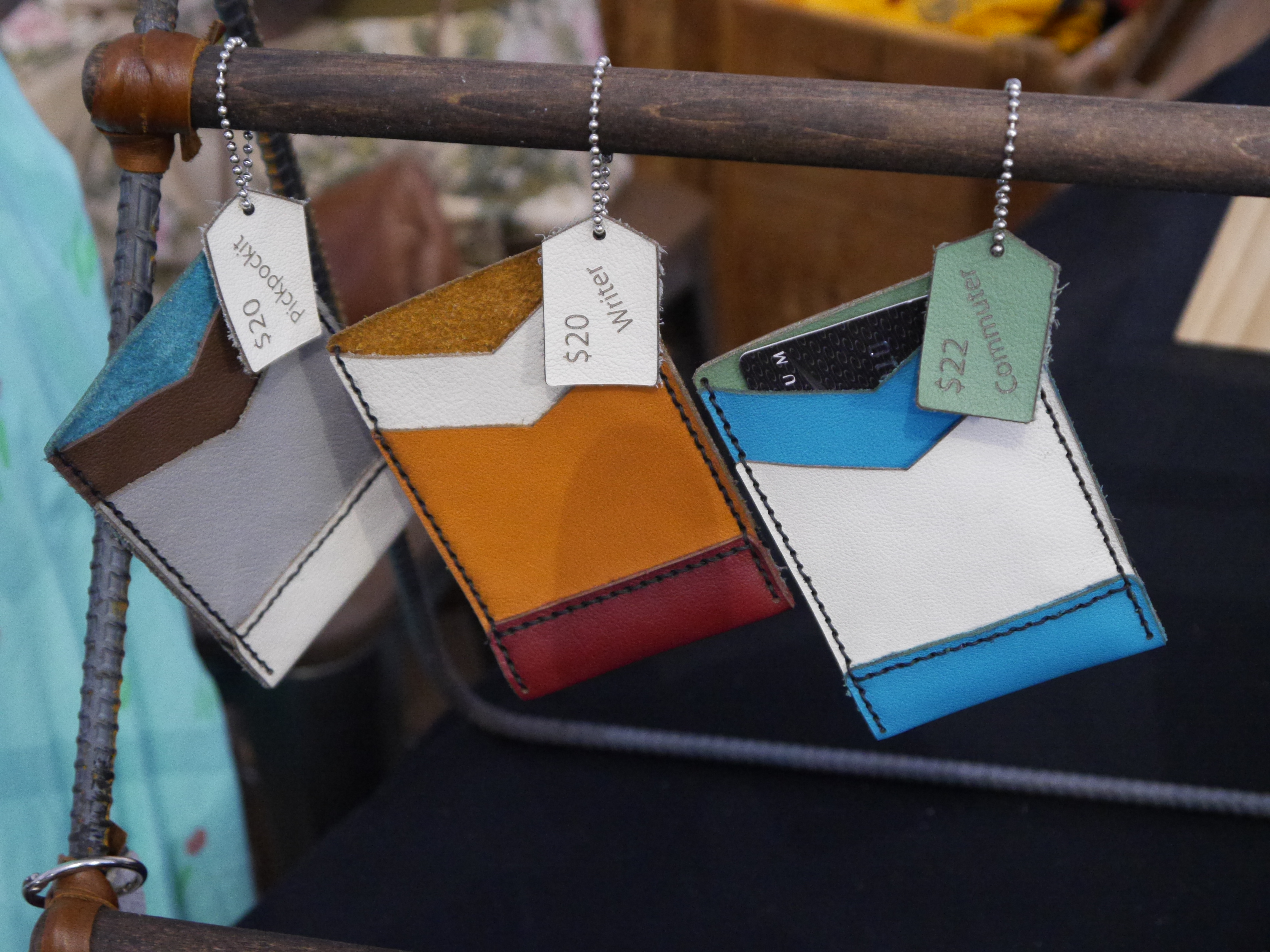 Sarah Grams from Pockit Lab has a unique little booth in the Bazaar. Instead of selling finished products, she is selling kits to make leather wallets. Once you pick out the design you want, you get to chose the leather pieces in whatever color you want. The pieces are then packed up with everything else you will need to make the wallet at home.