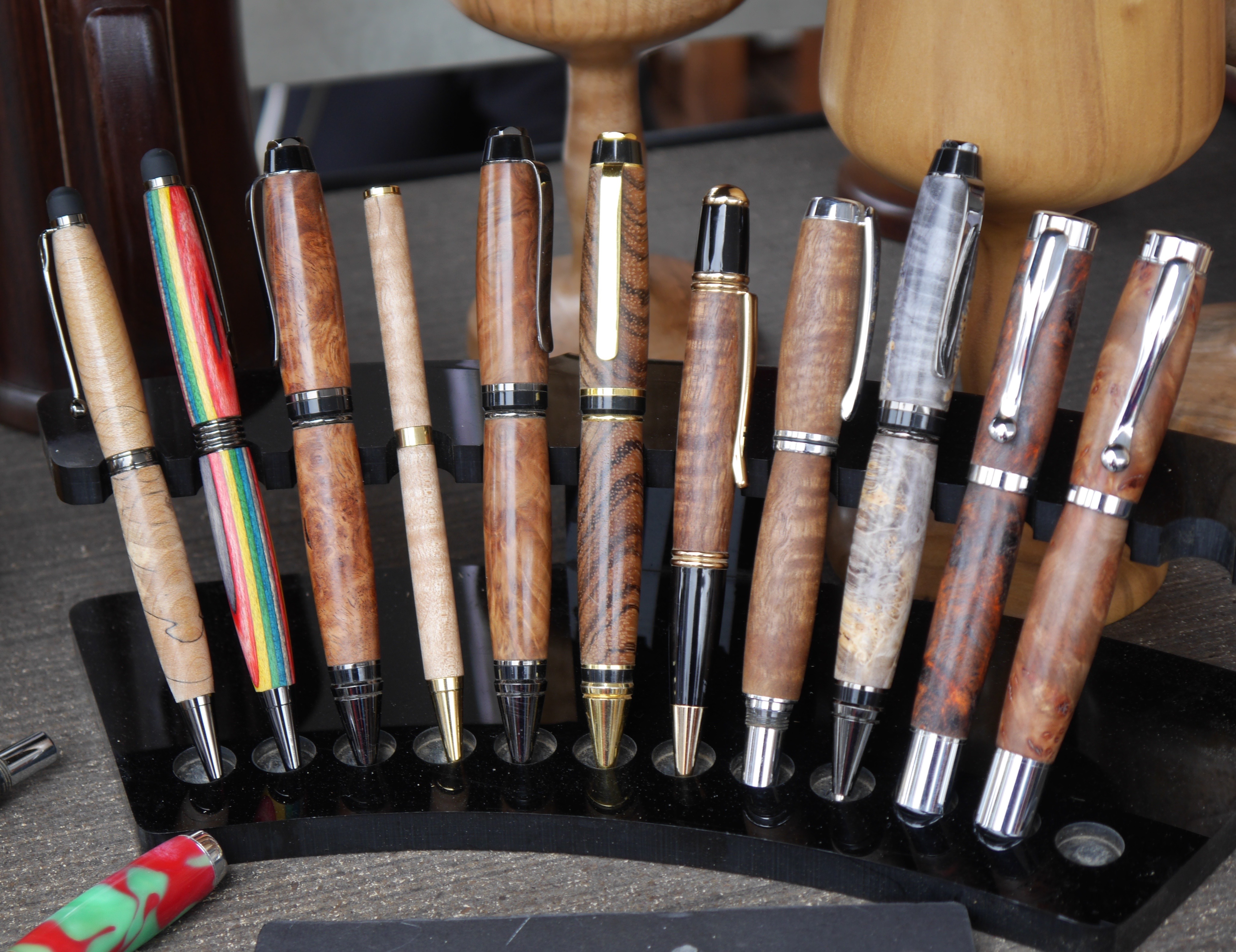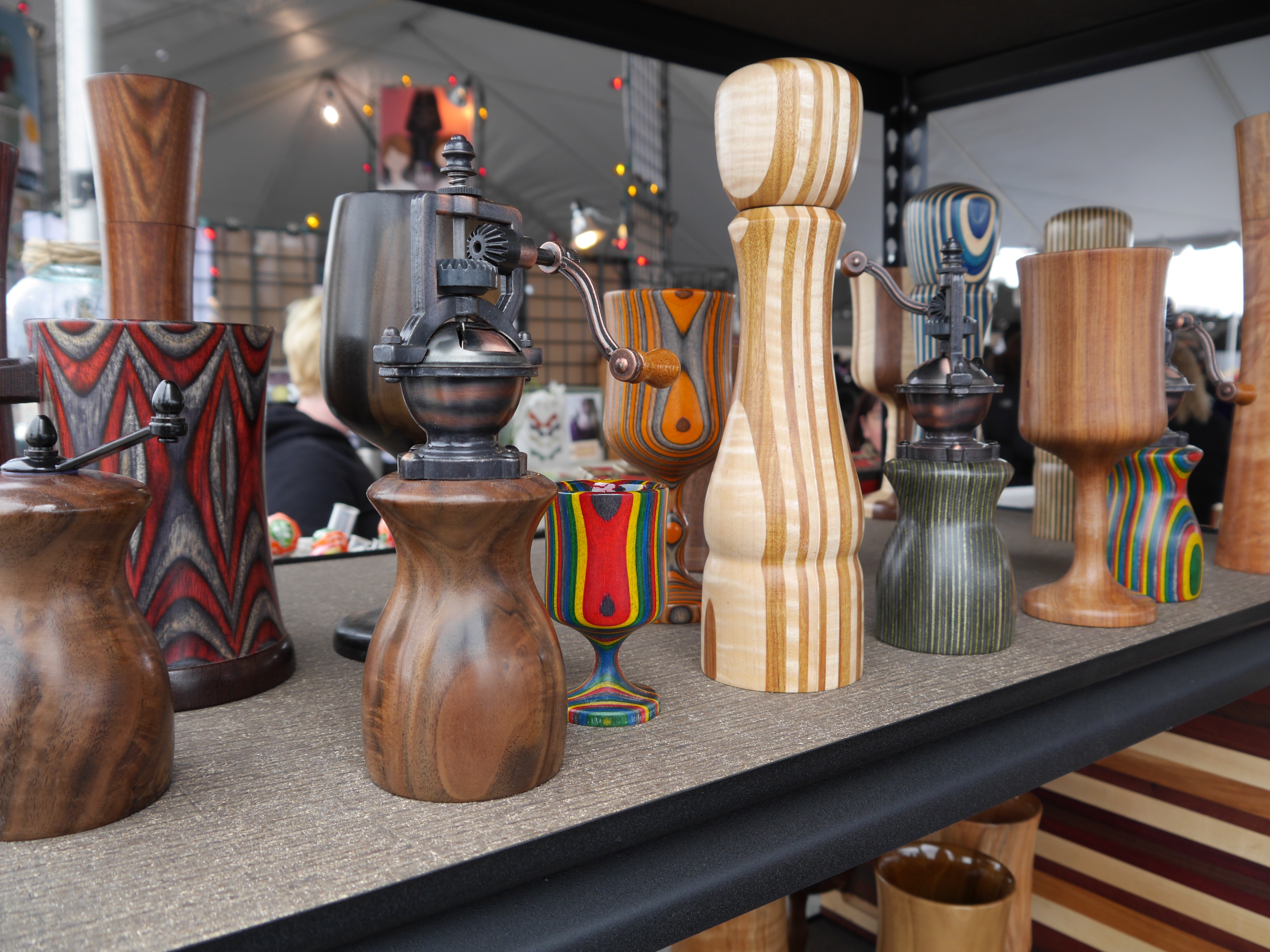 Tony Fredericks from As Wood as it Gets has now been to six Maker Faires. He is excited to be back and is showing off his amazing handcrafted wooden pieces. Many of these beautiful pieces would be perfect for your kitchen including mugs, pepper grinders, and colorful cutting boards. Make sure you check out his amazing collection of pens as well.