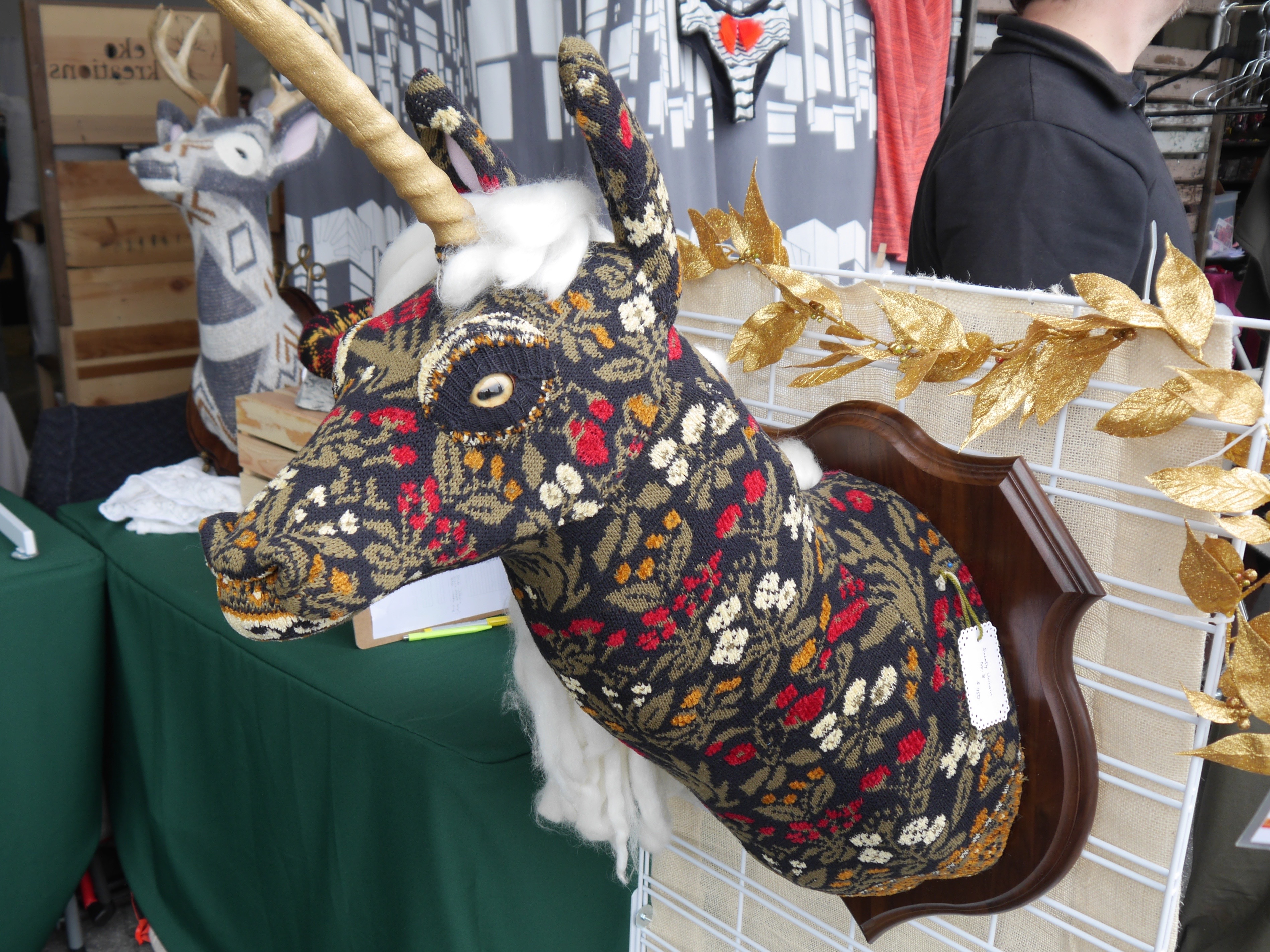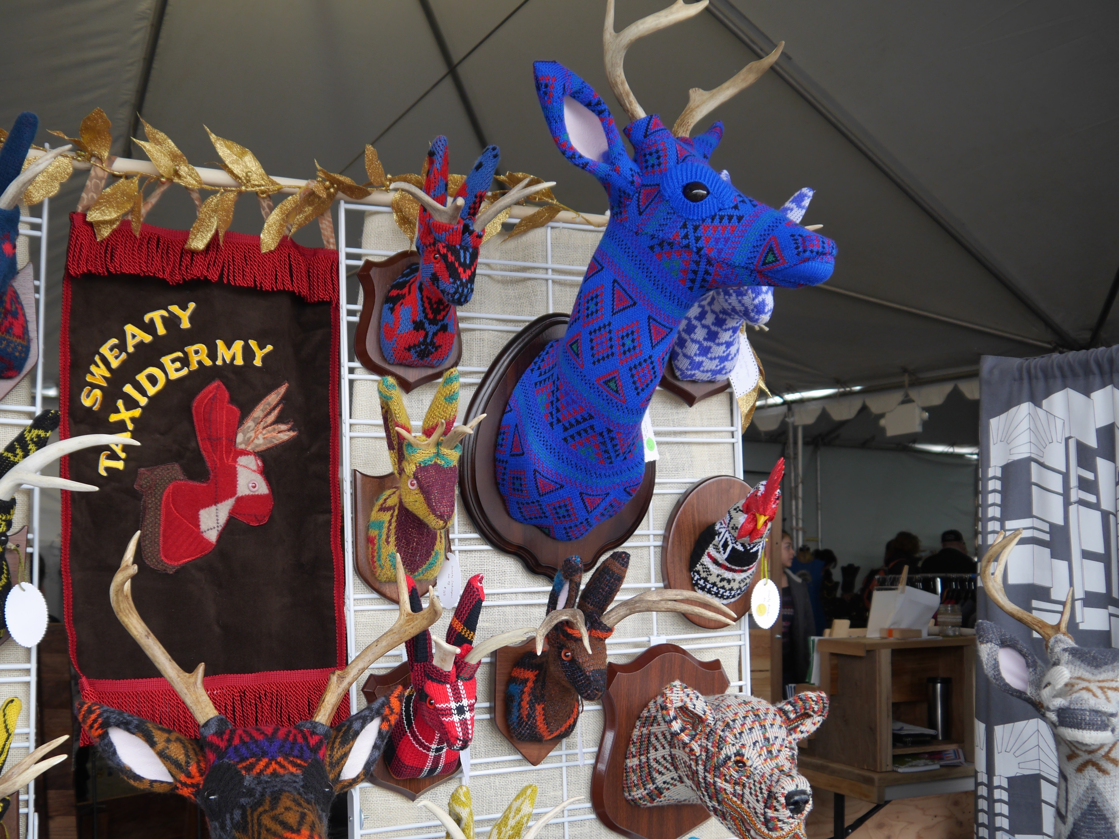 Pam Tellew from Frankenstuffies takes well-loved stuffed animals and gives them a new life! Many stuffed animals get worn with time, but with her creative reuse, these toys can become something new. Looking around her booth, you won’t find a single one like the other.