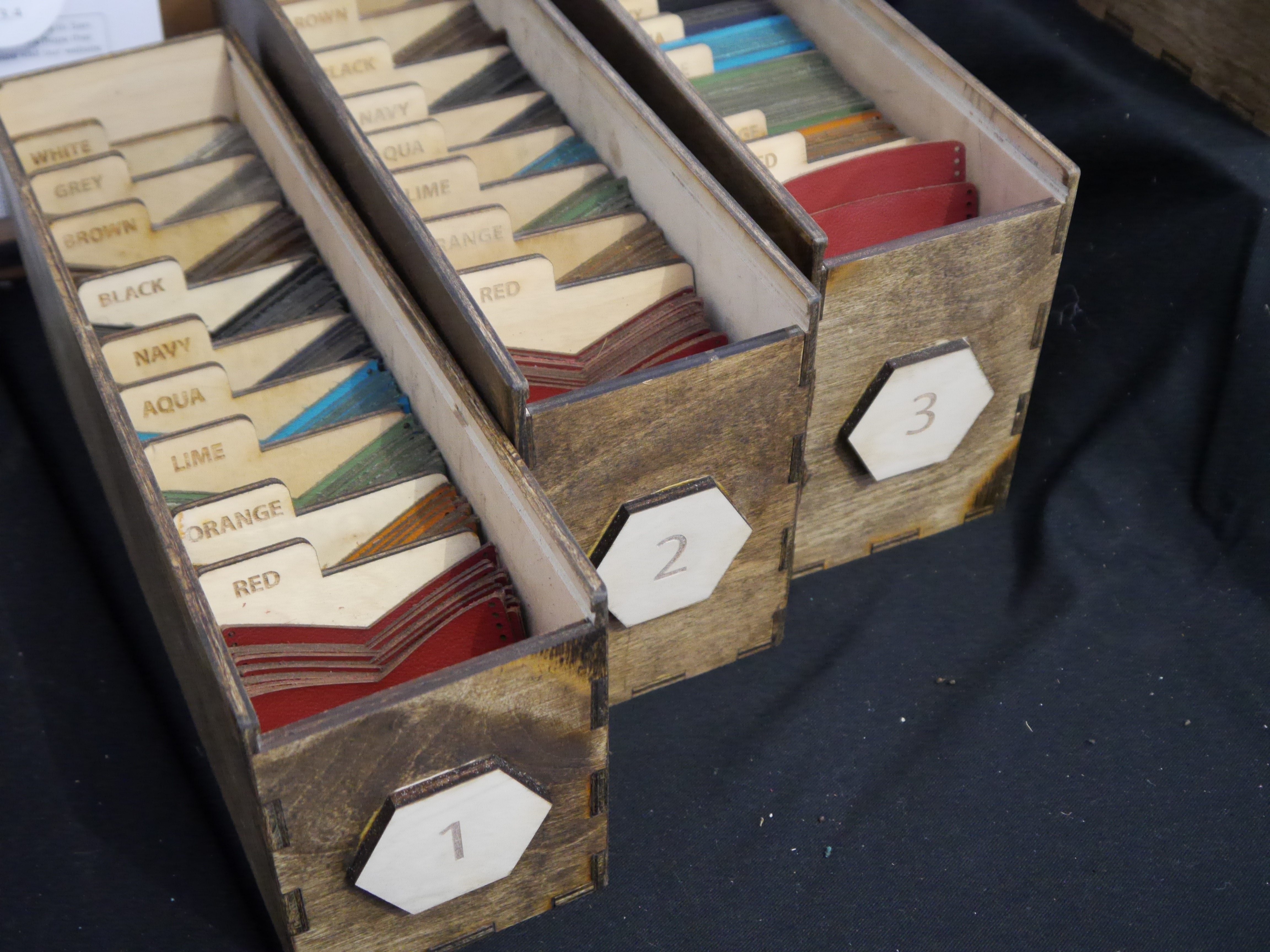 Sarah Grams from Pockit Lab has a unique little booth in the Bazaar. Instead of selling finished products, she is selling kits to make leather wallets. Once you pick out the design you want, you get to chose the leather pieces in whatever color you want. The pieces are then packed up with everything else you will need to make the wallet at home.