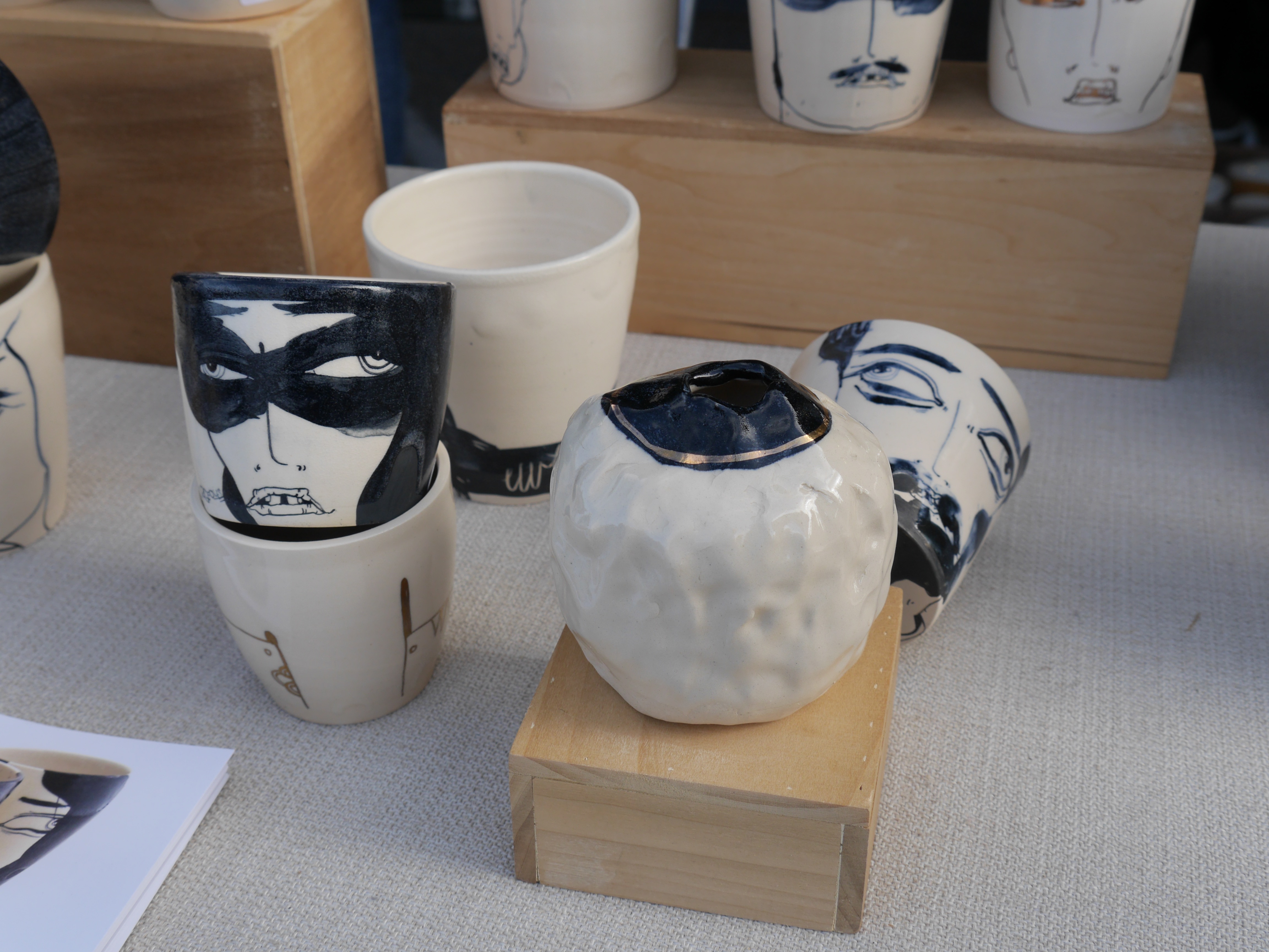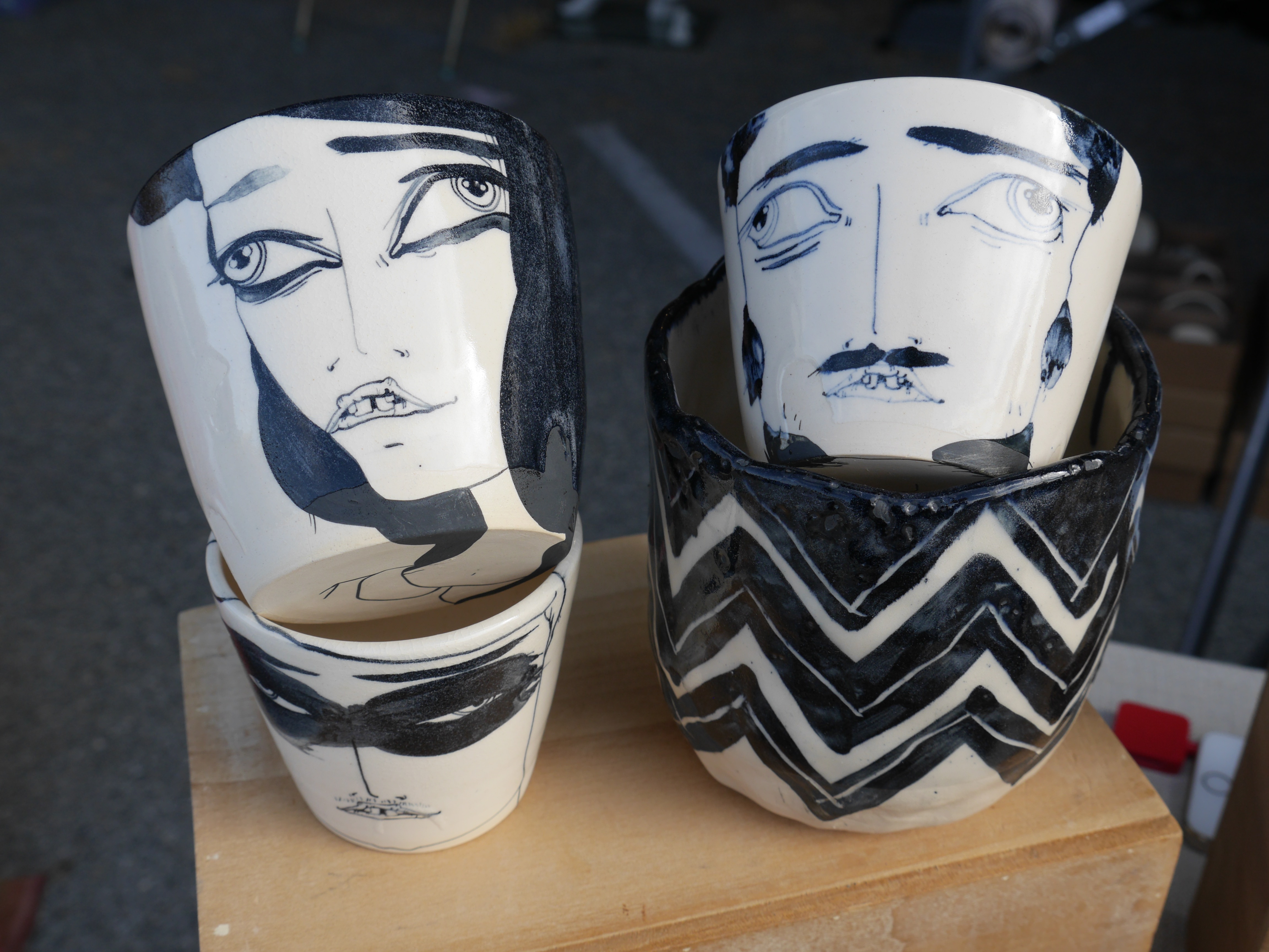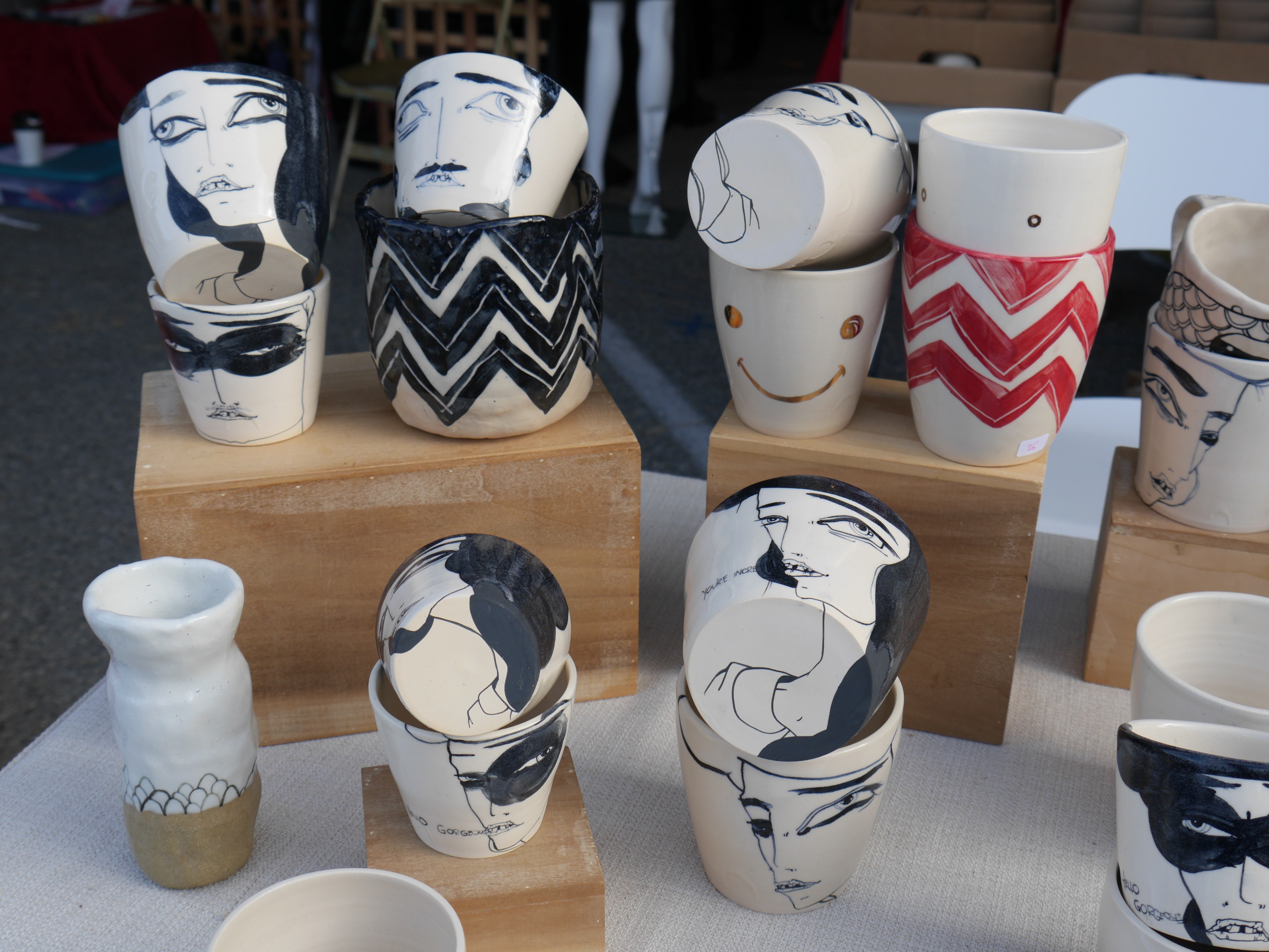 Klai Brown has a unique collection of mugs that she handcrafted and hand painted. Each one is unique and is unlike one you would find in a store. Get up close to see the amazing detail on these beautiful cups.